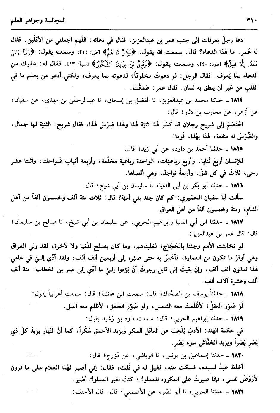 1418 - حدثنا أحمد نا إبراهيم الحربي نا داود بن رشيد نا أبو عبد الله الصوفي قال قال عيسى عليه السلام طالب الدنيا مثل شارب ماء البحر كلما ازداد شربا ازداد عطشا حتى يقتله