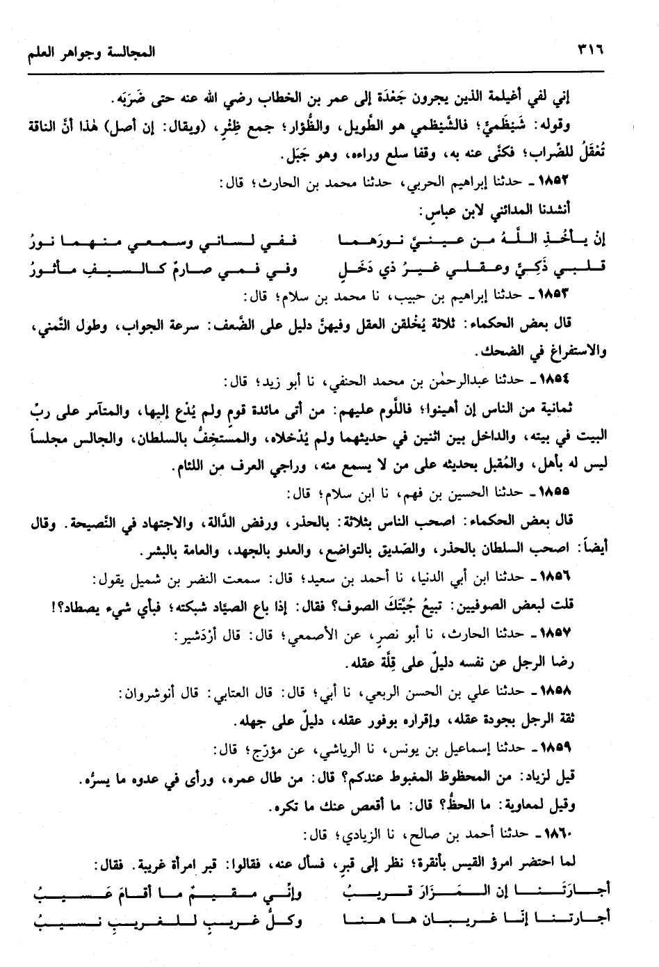 1446 - حدثنا أحمد نا إبراهيم بن دازيل نا موسى بن أيوب قال سألت يوسف بن أسباط عند حذيفة المرعشي ما العلم الأكبر فقال العلم الأكبر خوف الله عز وجل