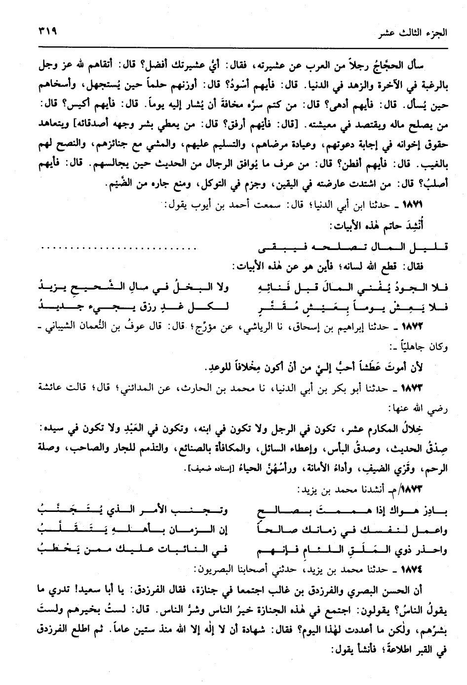 من كتاب المجالسة وجواهر العلم أخبرنا الشيخان أبو القاسم هبة الله بن علي بن سعود البوصيري وأبو عبد الله محمد بن حمد بن حامد الأرتاحي قال القيسي إجازة منهما وقال ابن علاق سماعا على البوصيري وإجازة من ابن حمد قالا أنا أبو الحسن علي بن الحسين بن عمر الفراء الموصلي قال البوصيري قراءة عليه وأنا أسمع وقال الأرتاحي إجازة قال أنا أبو القاسم عبد العزيز بن الحسن بن إسماعيل الضراب أنا أبي نا أحمد بن مروان بن محمد الدينوري المالكي