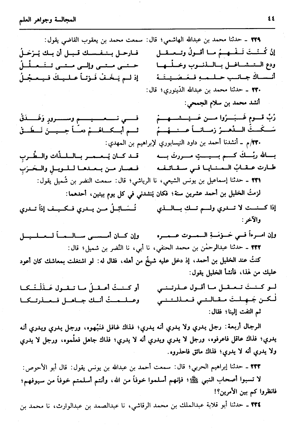 172 - حدثنا عباس بن محمد الدوري عن يحيى بن معين نا جرير عن عطاء بن السائب قال قال عبدة بن هلال والله لا تشهد عليّ شمسٌ بأكلٍ أبداً ولا يشهد عليَّ ليلٌ بنومٍ أبداً فأقسم عليه عمر بن الخطاب أن يفطر الفطِر والأضحى