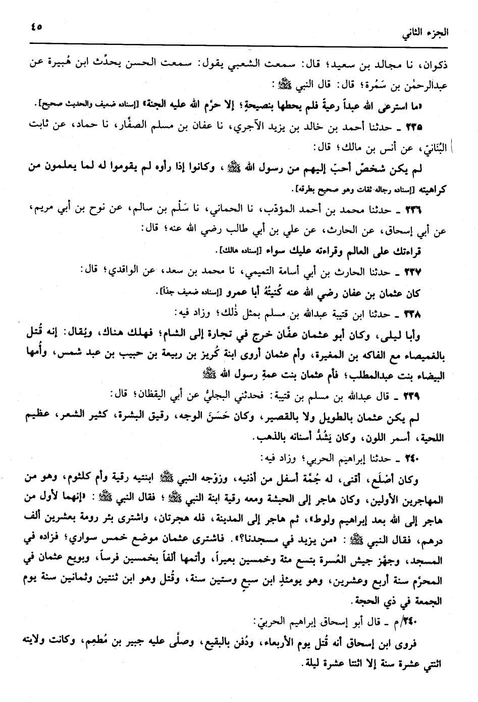 179 - حدثنا إبراهيم بن حبيب الهمذاني نا الحِناني نا عتبة بن الوليد قال كانت امرأة من التابعين تقول سبحانك ما أضيق الطريق على من لم تكن أنت دليله وما أوحش الطريق على من لم تكن أنت أنيسه