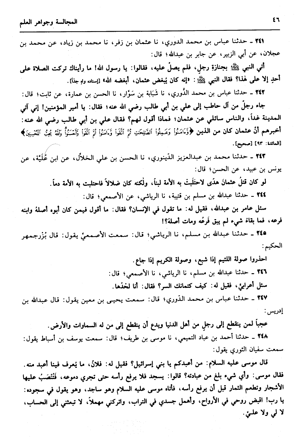 182 - حدثنا العباس بن الفضل حدثنا داود بن رشيد قال قال بشر بن الحارث مررت برجل من العُبَّاد بالبصرة وهو يبكي فقلت ما يُبكيك فقال أبكي على ما فرطت من عمري وعلى يومٍ مضى من أجلي لم يتبين فيه عملي