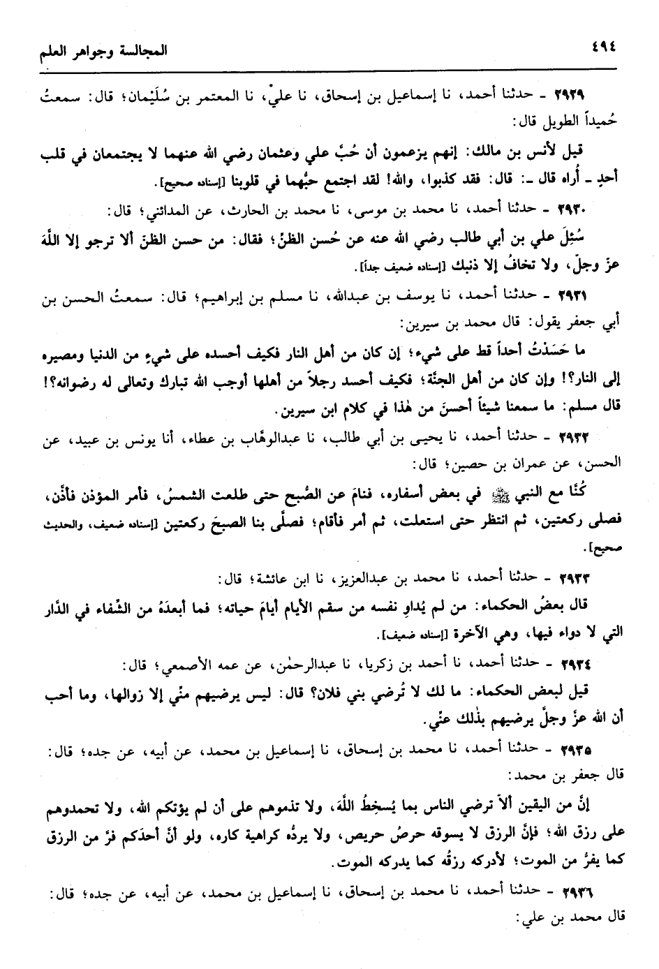 2291 - حدثنا محمد بن أحمد نا عبد المنعم عن أبيه عن وهب بن منبه أن يحيى بن زكريا عليه السلام لما قتل رد الله إليه روحه ثم أوقف بين يديه فقال له يا يحيى هذا عملك الذي عملته وقد أعطيتك ثواب عملك لكل واحدة عشرا الحسنة بعشر أمثالها قال فرأى يحيى إلى ثواب عمله فإذا قد أعطي من الثواب ما لا عين رأت ولا أذن سمعت ولا خطر على قلب بشر قال فقال الله عز وجل يا يحيى هذا عملك وهذا ثوابه فأين نعمائي عليك ثم قال الله عز وجل للملائكة أخرجوا نعمائي عليه فأخرجوا نعمة واحدة من نعمه فإذا قد استوعبت جميع أعماله والثواب فقال يحيى إلهي ما هذه النعمة الجليلة العظيمة التي قد استوعبت عملي وعشرة أضعاف ثوابها فقال الله عز وجل يا يحيى هذه النعمة العظيمة الجليلة معرفتك بي قال فخر يحيى لوجهه فقال إلهي جازيني برحمتك وبفضلك لا بعملي إسناده واه جداً