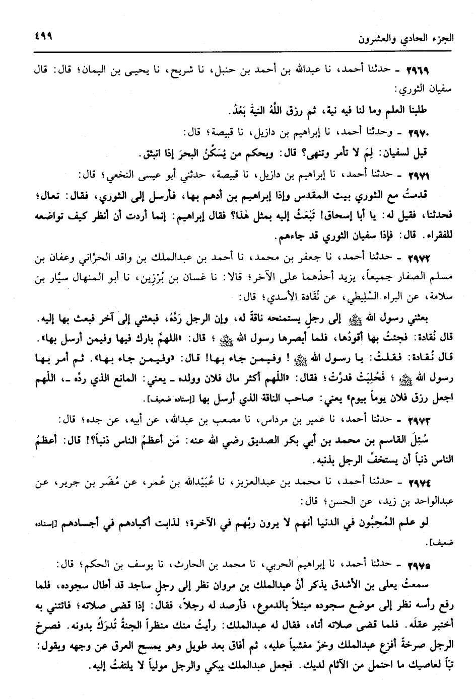 2305 - حدثنا زيد بن إسماعيل نا يزيد بن هارون نا عبد الرحمن بن أمية بن فضالة قال قال بكر بن عبد الله المزني قال أبو ذر يكفي من الدعاء من البر ما يكفي الطعام من الملح إسناده لين