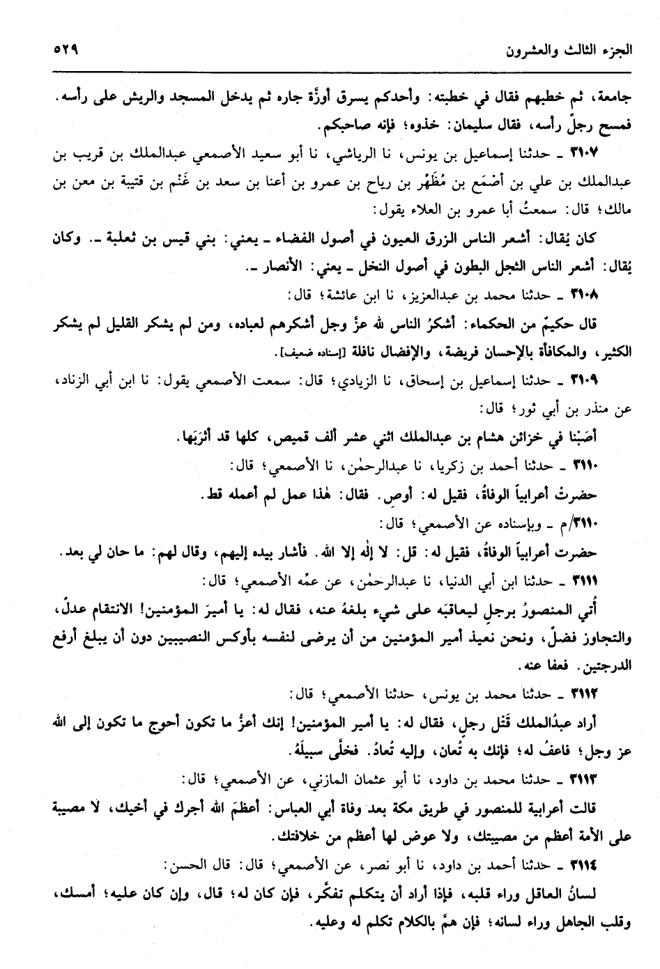 2447 - نا عباس بن محمد الدوري نا خالد بن مخلد نا عبد الله بن عمر عن سعيد بن أبي سعيد المقبري عن أبي هريرة قال جاء ضمام بن ثعلبة السعدي قال أيكم ابن عبد المطلب قالوا هذا الأمعر المرتفق وكان متكئا على ثوبه {صلى الله عليه وسلم} في المسجد فقال يا محمد إني سائلك ومشدد عليك في المسألة قال سل عما بدا لك قال أنشدك برب من قبلك ورب من بعدك آلله أرسلك إلينا قال اللهم نعم قال وأنشدك بمثل ذلك آلله أمرك أن نصلي في ليلنا ونهارنا خمس صلوات قال نعم قال وأسألك بمثل ذلك آلله أمرك أن تأخذ من أغنيائنا زكاتنا فتردها على فقرائنا قال نعم قال وأسالك بمثل ذلك آلله أمرك أن نصوم شهرا من اثنى عشر شهرا قال نعم قال وأسألك بمثل ذلك آلله أمرك أن نحج هذا البيت قال نعم قال فإني قد آمنت بك وصدقتك وأنا رسول من ورائي من قومي فأما ما كان بعض تلك الهنات فقد كنا نتنزه عنها في الجاهلية إسناده ضعيف والحديث صحيح