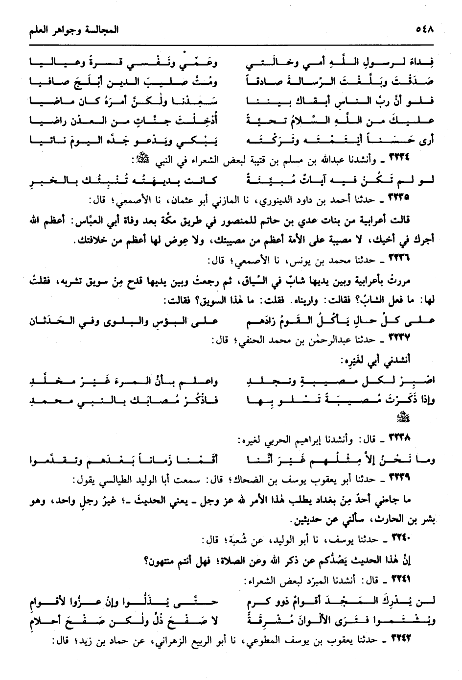 2542 - حدثنا أحمد نا إبراهيم الحربي نا أبو سلمة نا حماد بن سلمة نا علي بن زيد قال قيل لسعيد بن المسيب ما بال الحجاج لا يهيجك كما يهيج الناس قال لأنه دخل المسجد مع ابنيه فصلى فأساء صلاته فحصبته فقال الحجاج لا أزال أحسن صلاتي ما حصبني سعيد