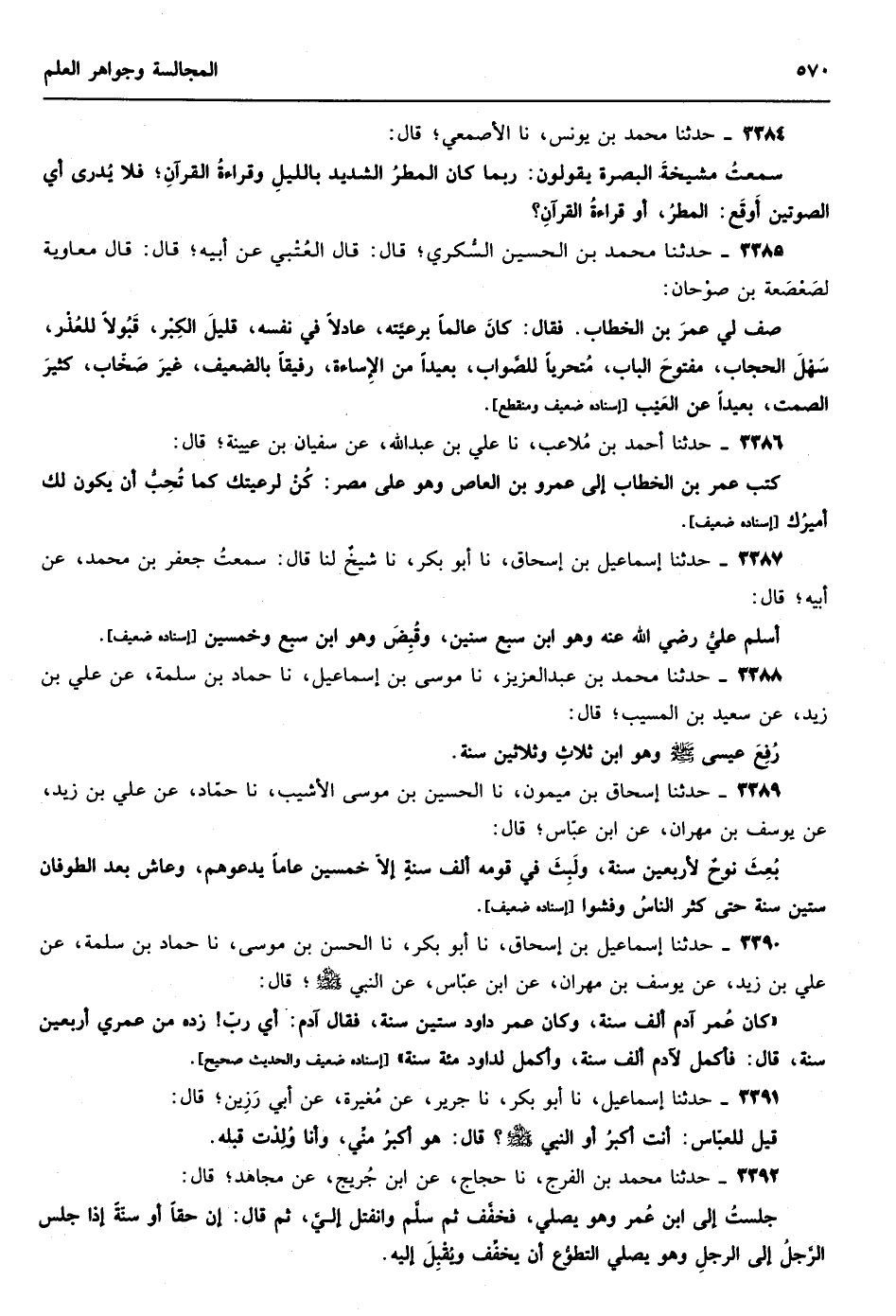 2653 - حدثنا أحمد نا عباس بن محمد الدوري نا يحيى بن معين نا عبد الرزاق عن معمر عن قتادة قال كان يستحب أن لا تقرأ الأحاديث التي عن النبي {صلى الله عليه وسلم} إلا على وضوء