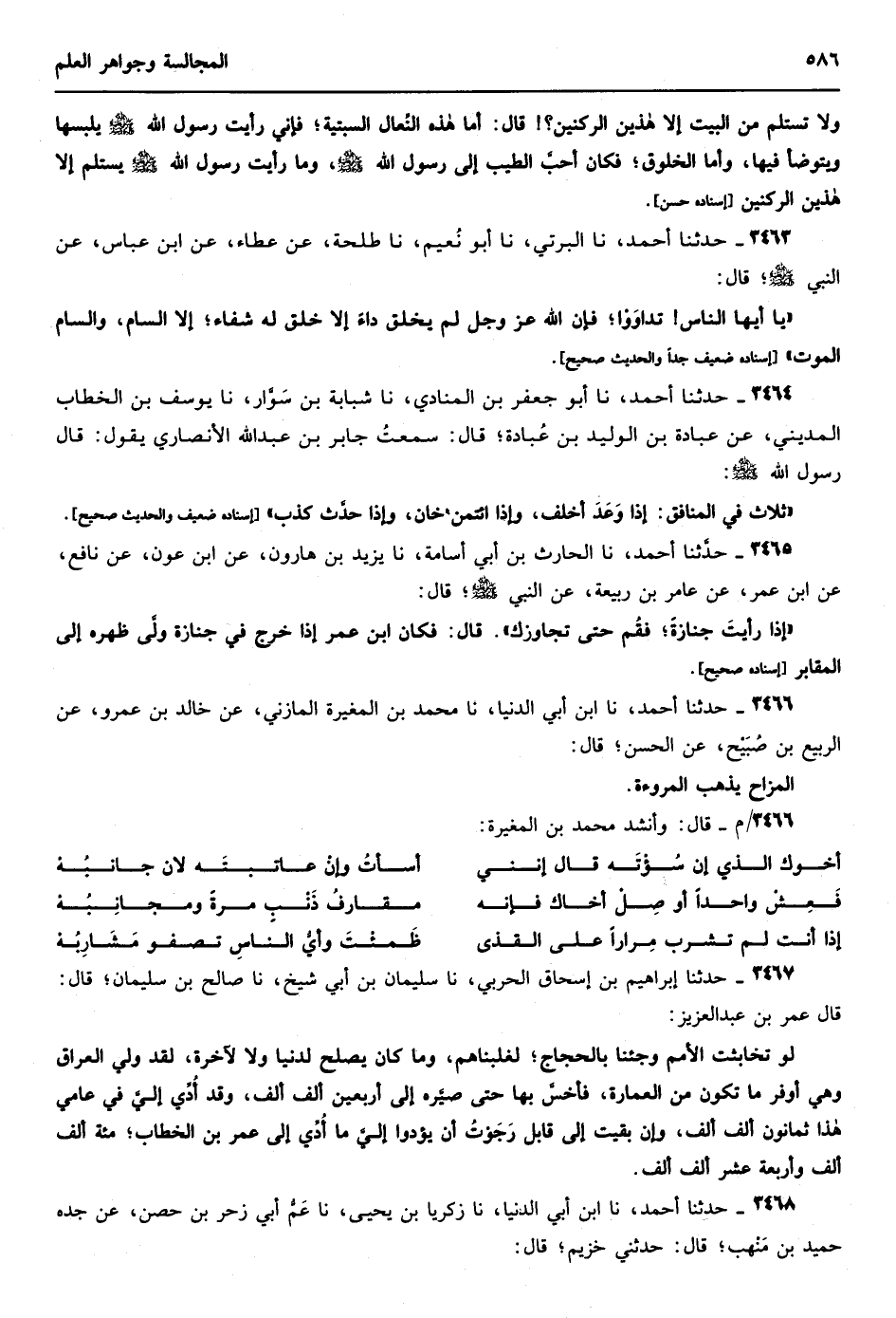 2750 - حدثنا أحمد نا محمد بن يونس نا الأصمعي قال سأل عبد الملك بن مروان الهيثم بن الأسود فقال له ما مالك قال القوام من العيش والغنى عن الناس فقيل له ألا خبرته قال لو قلت له إنه قليل حقرني أو إنه كثير حسدني