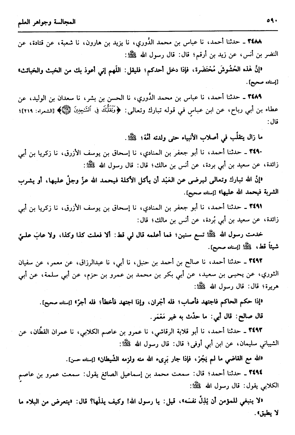 2770 - حدثنا أحمد نا الحارث بن أبي أسامة نا يزيد بن هارون أنا سعيد بن أبي عروبة عن قتادة عن أبي العالية عن ابن عباس عن النبي {صلى الله عليه وسلم} قال كلمات الفرج لا إله إلا الله الحليم الكريم لا إله إلا الله العلي العظيم لا إله إلا الله رب السماوات السبع ورب العرش الكريم حديث صحيح