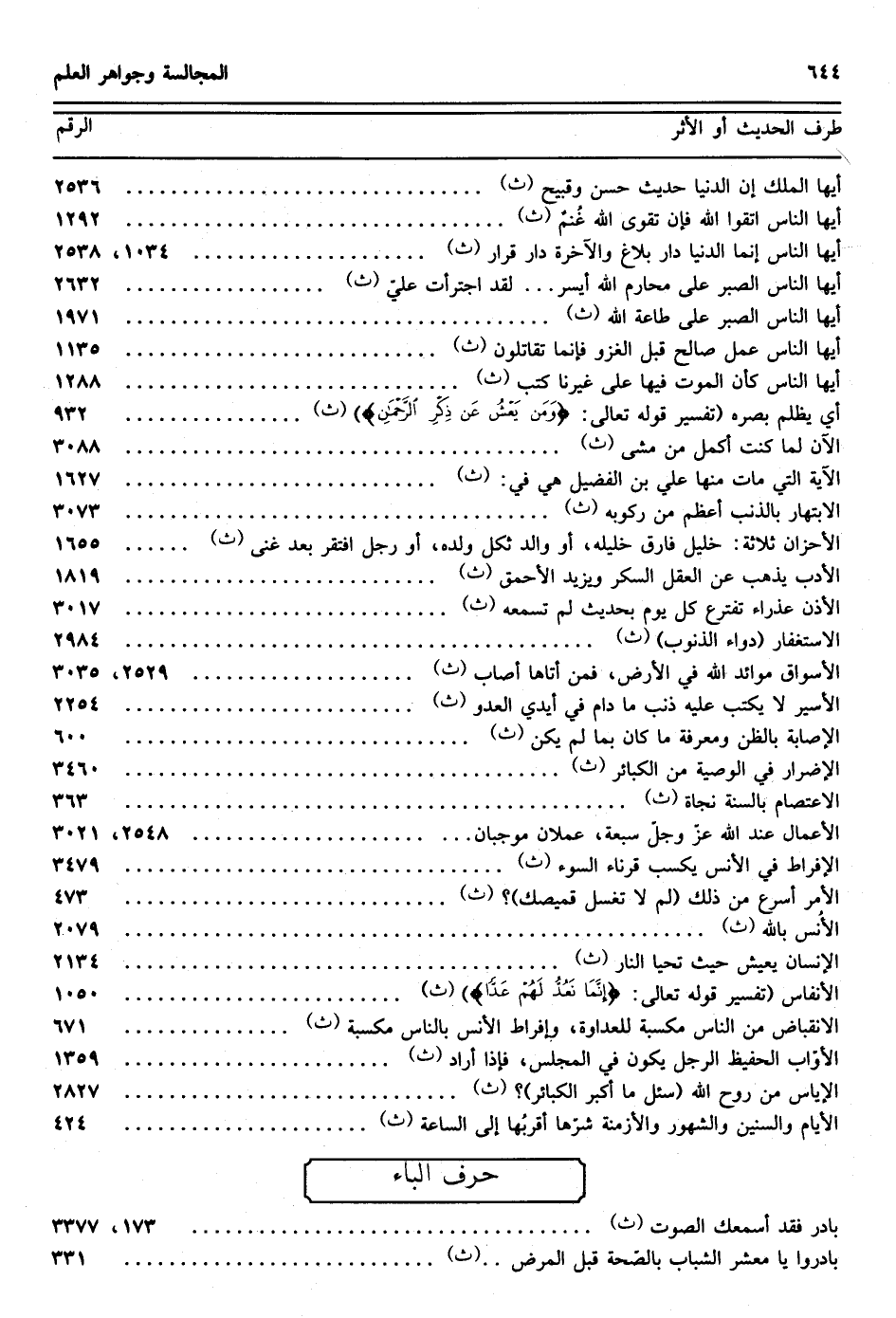 3019 - حدثنا أحمد نا ابن أبي الدنيا نا إبراهيم بن نصر نا محمد بن الحسين عن العتبي قال سمعته بمكة يقول ويدعو فسمعته يقول سبحان من شمل فضله وعم بالإحسان شكره وعلا في القديم ذكره وتقدم على كل ذي حق حقه ونفذ بالمشيئة أمره وعم الورى حفظه وأحاط بكل شيء علمه وبان عن كل ذي حق حقه وبان على كل ذي حلم حلمه وألهج أهل السماء بحمده وحرك كل ساكن بلطفه فسبحان من وسع سمعه الأصوات ولم تغب عن نظره الحركات ولم تشتبه عليه تصاريف اللغات قد أحكم بتدبيره ما حوى عليه النور والظلمات إلهي أنت نور الذاكرين وحامل الشاكرين وموصل المنقطعين ودليل المتحيرين ووسيلة الأوابين وحجة المحسنين وعماد الواثقين وعين الناظرين يا خير من استجلب به الخير ما أحسن أدبك وأبين على عبادك كرمك منك تعرف الأيادي ومنك يبتغى الجميل ضاق كل وسع عند وسعك وتلاشا كل معروف عند معروفك أنت حبيب العارفين وثقة المؤملين أوسعت أهل الخطايا حلما والعصاة فضلا والمعرضين عنك جودا لولا صفحك عن جرائم المذنبين لضاقت الفجاج ولفاضت البحار ولانخسف القرار ولزالت أقطار السماوات ولتدكدكت أركان الأرض وتعطل العمران ولضج القفار ولماج الهوام ولانقطع عن الفلك اختلاف الليل والنهار غضبا لك وإعظاما لأمرك إلهي كيف لا تبكي عيون الأبرار أم كيف لا تنخلع أوصال الصديقين يا من به ذهلت القلوب وبكت عليه العيون فيا سراج كل أواب أنت في كل نظر منظور وفي كل وهم موجود وصل إلى ذلك أهل العلم بك والمتروحون بنسيم روح ذكرك فهم أهلك والمكرمون ببرك والمشهورون بين بريتك إلهي فأسألك أن تجعل لي نورا أهتدي به لنورك وأسكن في قلبي معرفتك وإعظامك ما إذا