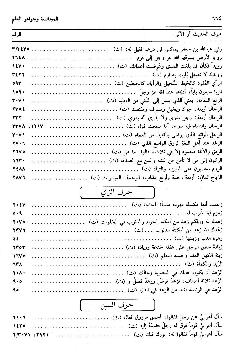 من كتاب المجالسة وجواهر العلم صلى الله على سيدنا محمد وعلى آله وصحبه وسلم تسليما كثيرا أخبرنا الشيخان أبو القاسم هبة الله بن علي بن سعود البوصيري وأبو عبد الله محمد بن حمد بن حامد الأرتاحي إذنا قالا أنا أبو الحسن علي بن الحسين بن عمر الفراء قال البوصيري قراءة عليه وأنا أسمع وقال الأرتاحي إجازة قال أنا أبو القاسم عبدالعزيز بن الحسن بن إسماعيل الضراب أنا أبي نا أبو بكر أحمد بن مروان بن محمد المالكي الدينوري