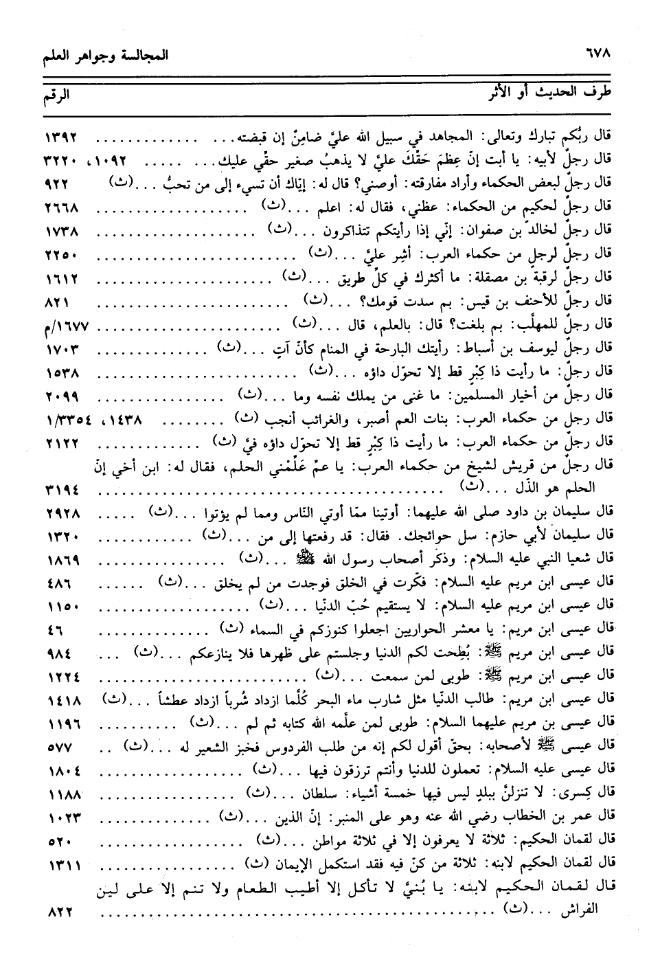 3143 - حدثنا أبو العباس المبرد قال حدثت عن أبي مخنف لوط بن يحيى حدثني عبد الملك بن مساحق عن سعيد بن أبي سعيد المقبري قال لما طعن أبو عبيدة بن الجراح رضي الله عنه بالأردن وبها قبره دعا من حضره من المسلمين فقال إني موصيكم بوصية إن قبلتموها لم تزالوا بخير أقيموا الصلاة وآتوا الزكاة وصوموا شهر رمضان وتصدقوا وحجوا واعتمروا وتواصوا وانصحوا لأمرائكم ولا تغشوهم ولا تلهكم الدنيا فإن امرءا لو عمر ألف حول ماكان له بد من أن يصير إلى مصرعي هذا الذي ترون إن الله عز وجل كتب الموت على بني آدم فهم ميتون وأكيسهم أطوعهم لربه عز وجل وأعملهم ليوم معاده والسلام عليكم ورحمة الله يا معاذ بن جبل صل بالناس ومات فقام معاذ بن جبل في الناس فقال يا أيها الناس توبوا إلى الله عز وجل من ذنوبكم توبة نصوحا فإن عبداً لا يلقى الله عز وجل تائبا من ذنبه إلا كان حقا على الله عز وجل أن يغفر له من كان عليه دين فليقضه فإن العبد مرتهن بدينه ومن أصبح منكم مهاجرا أخاه فليلقه فليصالحه ولا ينبغي لمسلم أن يهجر أخاه في الله أكثر من ثلاث والذنب عظيم إنكم أيها المسلمون قد فجعتم برجل ما أزعم أني رأيت عبدا أبر صدراً ولا أبعد من الغائلة ولا أشد حبا للعامة ولا أنصح للعامة منه فترحموا عليه رحمه الله واحضروا الصلاة عليه إسناده ضعيف جدا