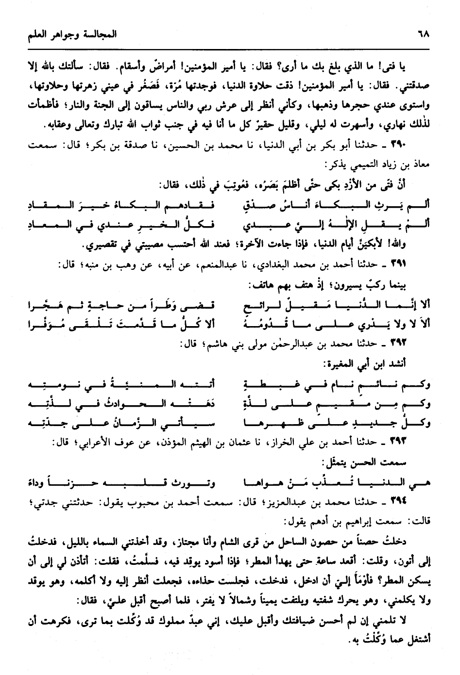287 - حدثنا أبو بكر أخو خطَّاب نا خالد بن خِداش عن صالحٍ المريّ عن أبي عمران الجَوْني عن أبي الجَلْد قال قرأت في مُناجاة داود عليه السلام إلهي ما جزاء من بكى من خشيتك حتى تسيل دموعهُ على وجهه قال جزاؤه أن أحرم وجهه على النار وأئمنه من الفزع الأكبر إسناده واهٍ جداً