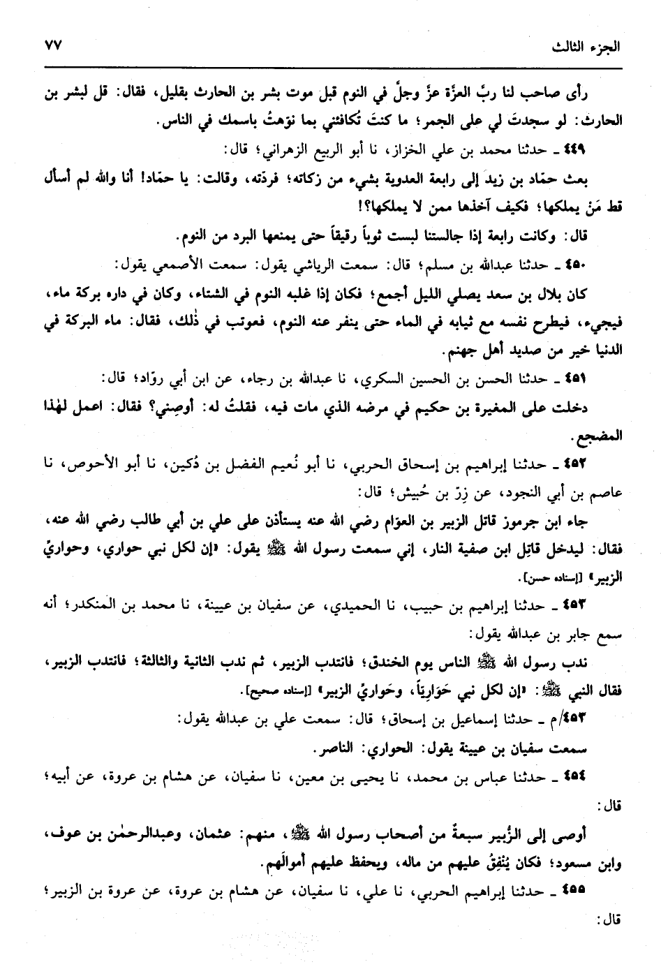 329 - حدثنا عبد الرحمن بن محمد الحنفي نا أبو حذيفة قال كنا عند سفيان الثوري فدخل إليه رجل من عند شريك القاضي له سَجَّادة ٌ كبيرة ٌ فقال له الثوري يا هذا الرجل إن كانت هذه السجادة لله فلا يحل لك أن تُكلم شريكاً وإن كنت جعلتها من أجل شريك فلا يحل لي كلامُك