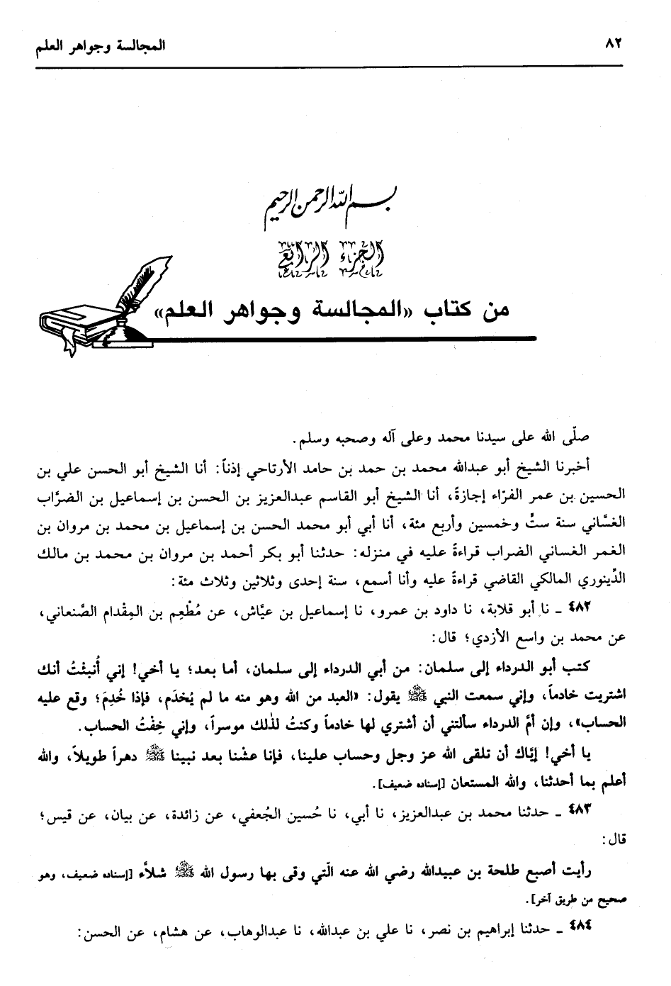 363 - حدثنا عباس الدوري نا منصور بن سلمة نا سليمان بن بلال عن يونس بن يزيد عن ابن شهاب الزهري قال سمعت رجالاً من أهل العلم يقولون الاعتصام بالسنة نجاة