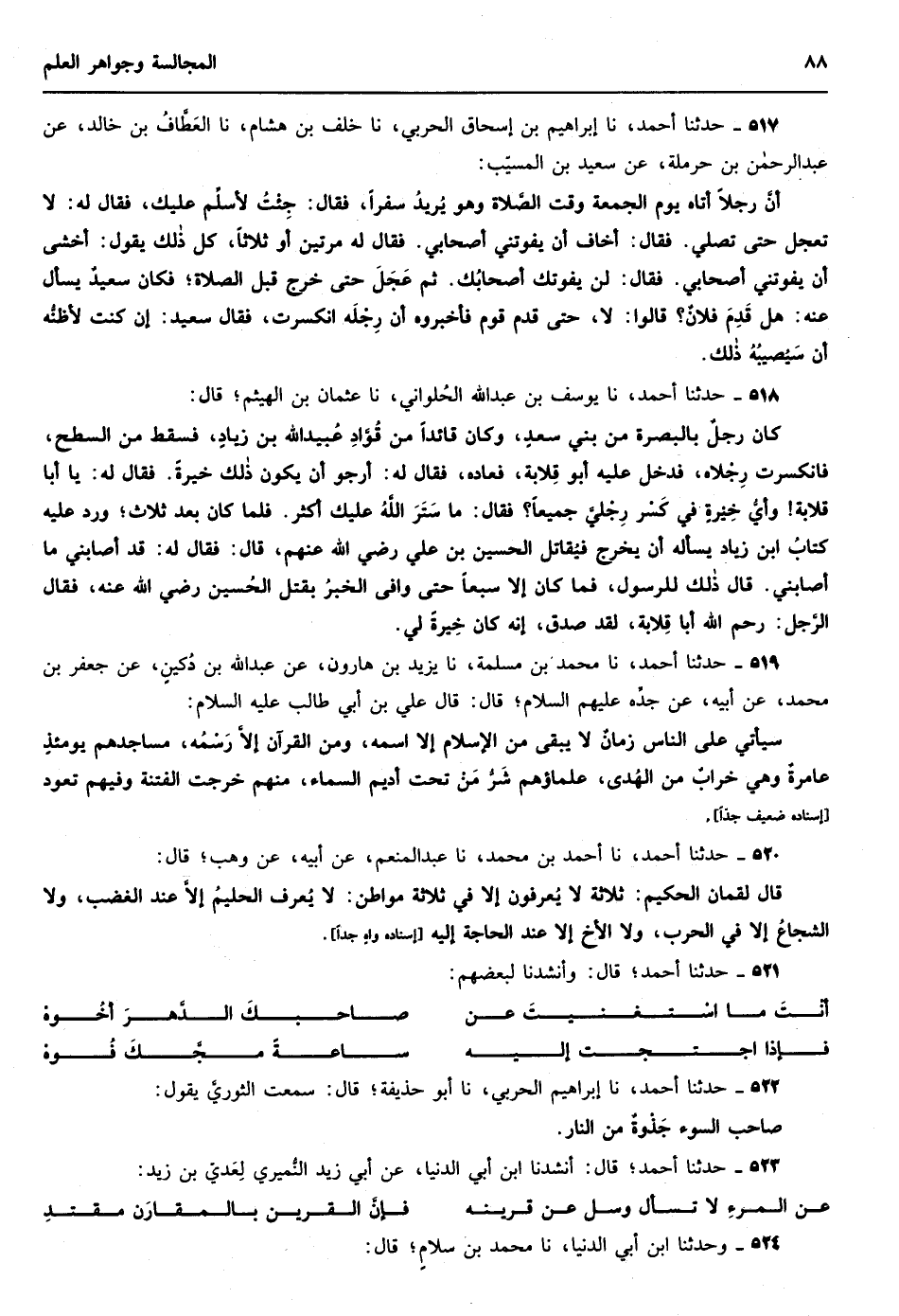 395 - حدثنا أحمد بن يوسف التغلبي نا أحمد بن عبد الله بن يونس قال سمعت سفيان الثوري يقول إذا ختم الرجل القرآن قبْل الملك بين عينيه قال أحمد بن يوسف فحدثني بعض أصحابنا قال ذكرت ذلك لأحمد بن حنبل فقال رحم الله سفيان هذا من مخبّآت سفيان