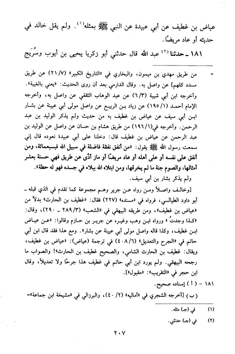 181 - حَدَّثَنَا عَبْدُ اللَّهِ قَالَ: حَدَّثَنِي أَبُو زَكَرِيَّا يَحْيَى بْنُ أَيُّوبَ، وَسُرَيْجُ -[208]- بْنُ يُونُسَ قَالَا: ثنا إِسْمَاعِيلُ بْنُ جَعْفَرٍ قَالَ: أَخْبَرَنِي أَبُو سُهَيْلٍ وَقَالَ سُرَيْجٌ فِي حَدِيثِهِ قَالَ: أَنْبَأَ أَبُو سُهَيْلٍ نَافِعُ بْنُ مَالِكِ بْنِ أَبِي عَامِرٍ، عَنْ أَبِيهِ، عَنْ أَبِي هُرَيْرَةَ، أَنَّ رَسُولَ اللَّهِ صَلَّى اللهُ عَلَيْهِ وَسَلَّمَ قَالَ: «إِذَا جَاءَ رَمَضَانُ فُتِّحَتْ أَبْوَابُ الْجَنَّةِ، وَغُلِّقَتْ أَبْوَابُ النَّارِ، وَصُفِّدَتِ الشَّيَاطِينُ»