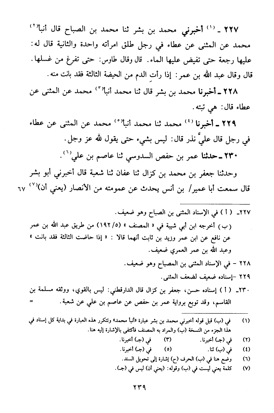 227 - أَخْبَرَنِي مُحَمَّدُ بْنُ بِشْرٍ، ثنا مُحَمَّدُ بْنُ الصَّبَّاحِ قَالَ: أَنْبَأَ مُحَمَّدٌ، عَنِ الْمُثَنَّى، عَنْ عَطَاءٍ " فِي رَجُلٍ طَلَّقَ امْرَأَتَهُ وَاحِدَةً وَالثَّانِيَةَ قَالَ لَهُ: عَلَيْهَا رَجْعَةً حَتَّى تُفِيضَ عَلَيْهَا الْمَاءَ "