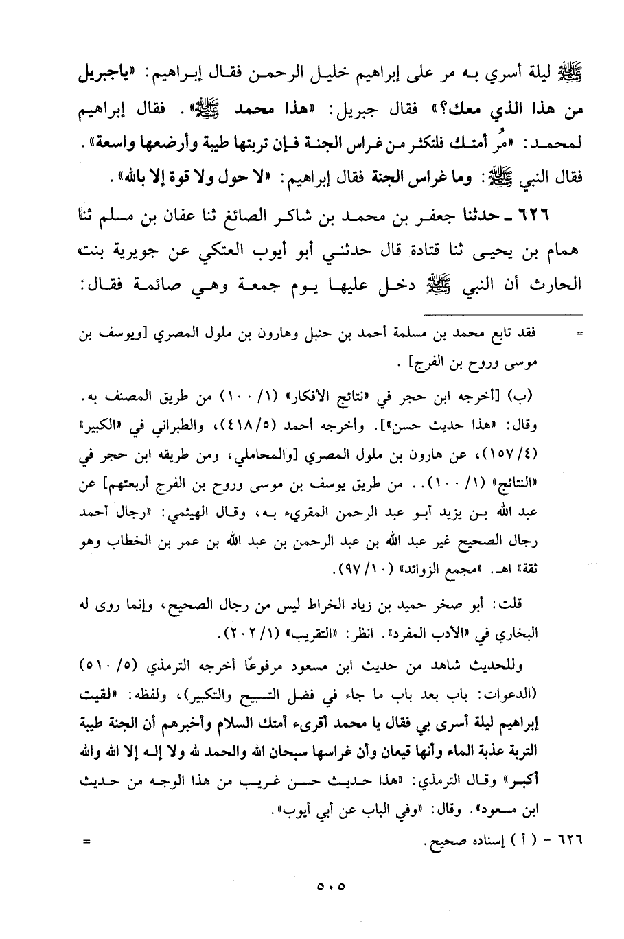 626 - حَدَّثَنَا جَعْفَرُ بْنُ مُحَمَّدِ بْنِ شَاكِرٍ الصَّائِغُ، ثنا عَفَّانُ بْنُ مُسْلِمٍ، ثنا هَمَّامُ بْنُ يَحْيَى، ثنا قَتَادَةُ قَالَ: حَدَّثَنِي أَبُو أَيُّوبَ الْعَتَكِيُّ، عَنْ جُوَيْرِيَةَ بِنْتِ الْحَارِثِ أَنَّ النَّبِيَّ صَلَّى اللهُ عَلَيْهِ وَسَلَّمَ دَخَلَ عَلَيْهَا يَوْمَ جُمُعَةٍ وَهَى صَائِمَةٌ، فَقَالَ -[506]-: «أَصُمْتِ أَمْسِ؟» قَالَتْ: لَا قَالَ: «أَتُرِيدِينَ أَنْ تَصُومِي غَدًا»، قَالَتْ: لَا، قَالَ: «فَأَفْطِرِي»