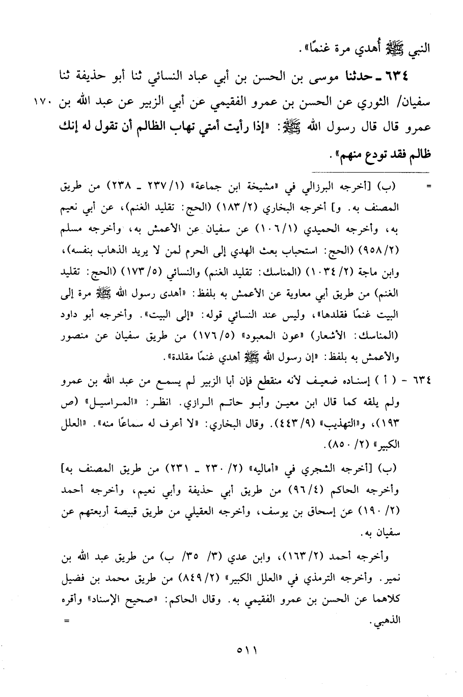 634 - حَدَّثَنَا مُوسَى بْنُ الْحَسَنِ بْنِ أَبِي عَبَّادٍ النَّسَائِيُّ، ثنا أَبُو حُذَيْفَةَ، ثنا سُفْيَانُ الثَّوْرِيُّ، عَنِ الْحَسَنِ بْنِ عَمْرٍو الْفُقَيْمِيِّ، عَنْ أَبِي الزُّبَيْرِ، عَنْ عَبْدِ اللَّهِ بْنِ عَمْرٍو قَالَ: قَالَ رَسُولُ اللَّهِ صَلَّى اللهُ عَلَيْهِ وَسَلَّمَ: «إِذَا رَأَيْتَ أُمَّتِيَ تَهَابُ الظَّالِمَ أَنْ تَقُولَ لَهُ إِنَّكَ ظَالِمٌ فَقَدْ تُوُدِّعَ مِنْهُمْ»