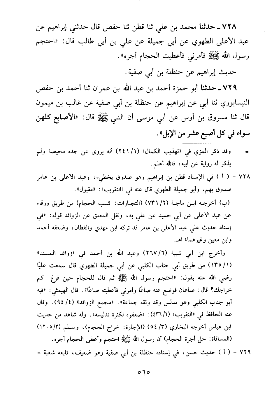 728 - حَدَّثَنَا مُحَمَّدُ بْنُ عَلِيٍّ، ثنا قَطَنٌ، ثنا حَفْصٌ قَالَ: حَدَّثَنِي إِبْرَاهِيمُ، عَنْ عَبْدِ الْأَعْلَى الطَّهَوِيِّ، عَنْ أَبِي جَمِيلَةَ، عَنْ عَلِيِّ بْنِ أَبِي طَالِبٍ قَالَ: «احْتَجَمَ رَسُولُ اللَّهِ صَلَّى اللهُ عَلَيْهِ وَسَلَّمَ فَأَمَرَنِي فَأَعْطَيْتُ الْحَجَّامَ أَجْرَهُ»