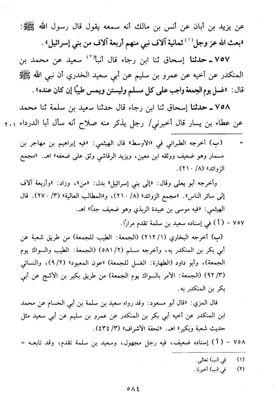 757 - حَدَّثَنَا إِسْحَاقُ، ثنا ابْنُ رَجَاءٍ قَالَ: أَنْبَأَ سَعِيدٌ، عَنْ مُحَمَّدِ بْنِ الْمُنْكَدِرِ، عَنْ أَخِيهِ، عَنْ عَمْرِو بْنِ سُلَيْمٍ، عَنْ أَبِي سَعِيدٍ الْخُدْرِيِّ، أَنَّ نَبِيَّ اللَّهِ صَلَّى اللهُ عَلَيْهِ وَسَلَّمَ قَالَ: «غُسْلُ يَوْمِ الْجُمُعَةِ وَاجِبٌ عَلَى كُلِّ مُسْلِمٍ وَلْيَسْتَنَّ وَيَمَسَّ طِيبًا إِنْ كَانَ عِنْدَهُ»