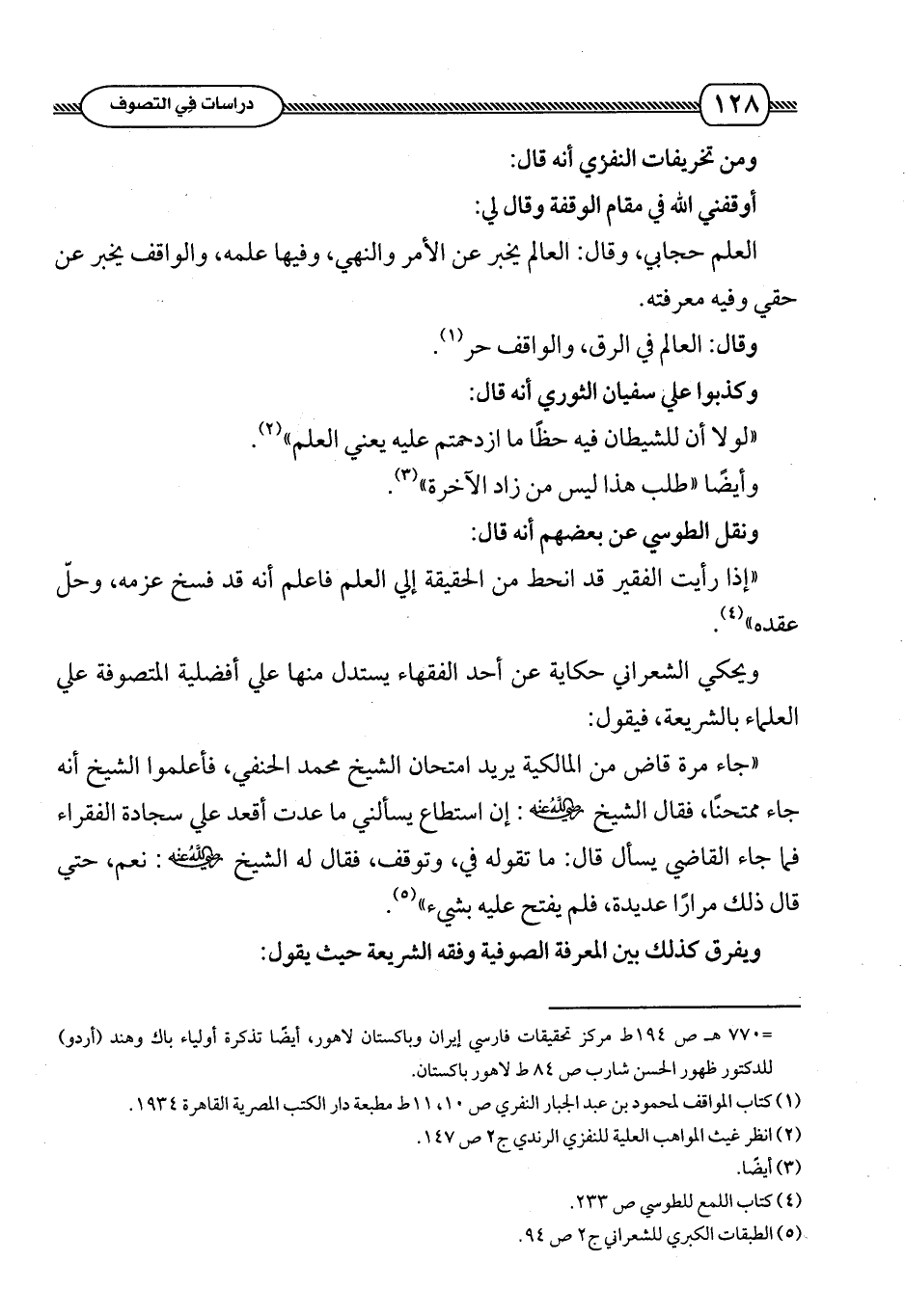 (¬1) كتاب ((المواقف)) لمحمود بن عبد الجبار النفري ص 10 - 11 ط مطبعة دار الكتب المصرية القاهرة 1934.