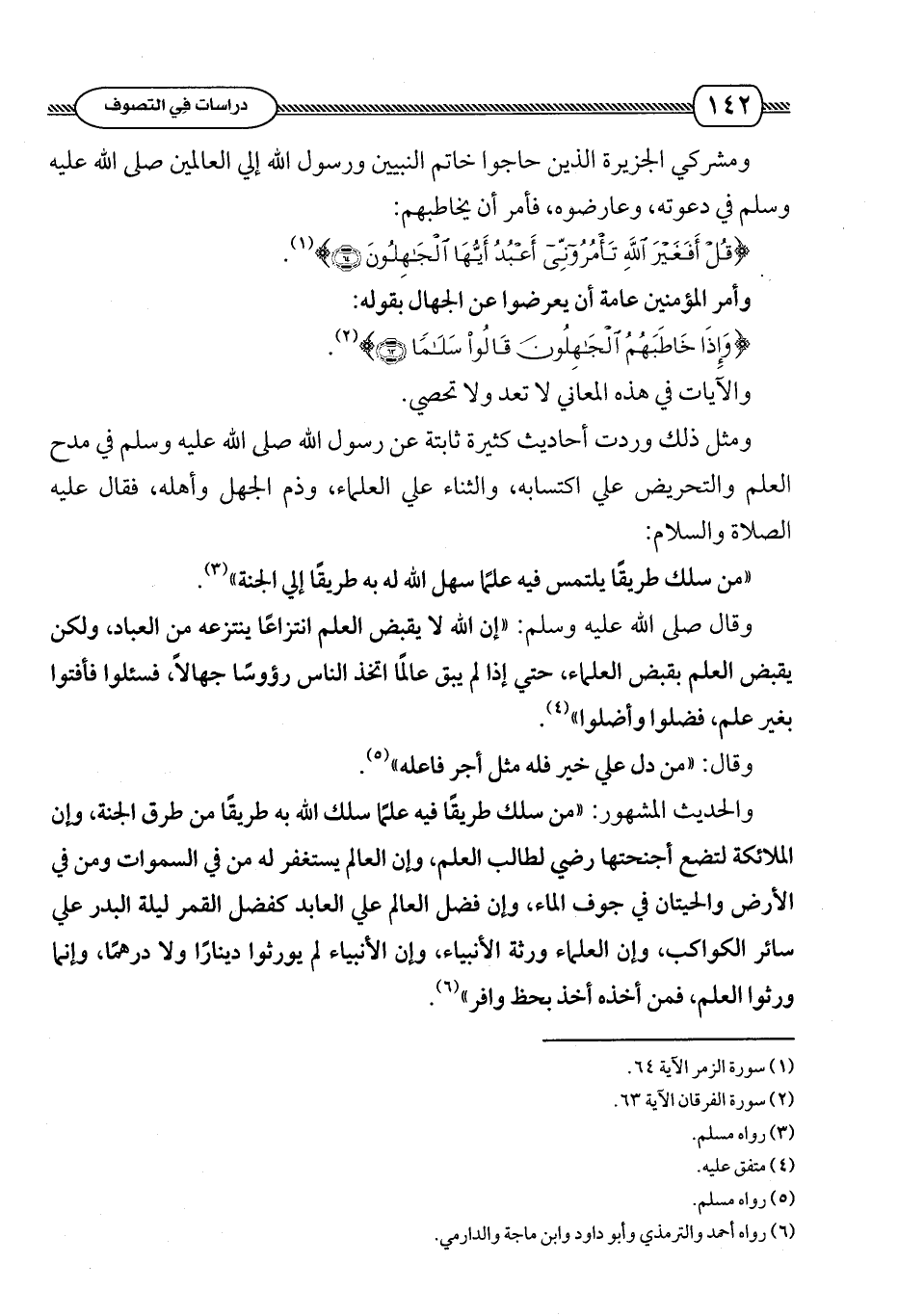 ومثل ذلك وردت أحاديث كثيرة ثابتة عن رسول الله صلى الله عليه وسلم في مدح العلم والتحريض على اكتسابه , والثناء على العلماء , وذم الجهل وأهله , فقال عليه الصلاة والسلام: