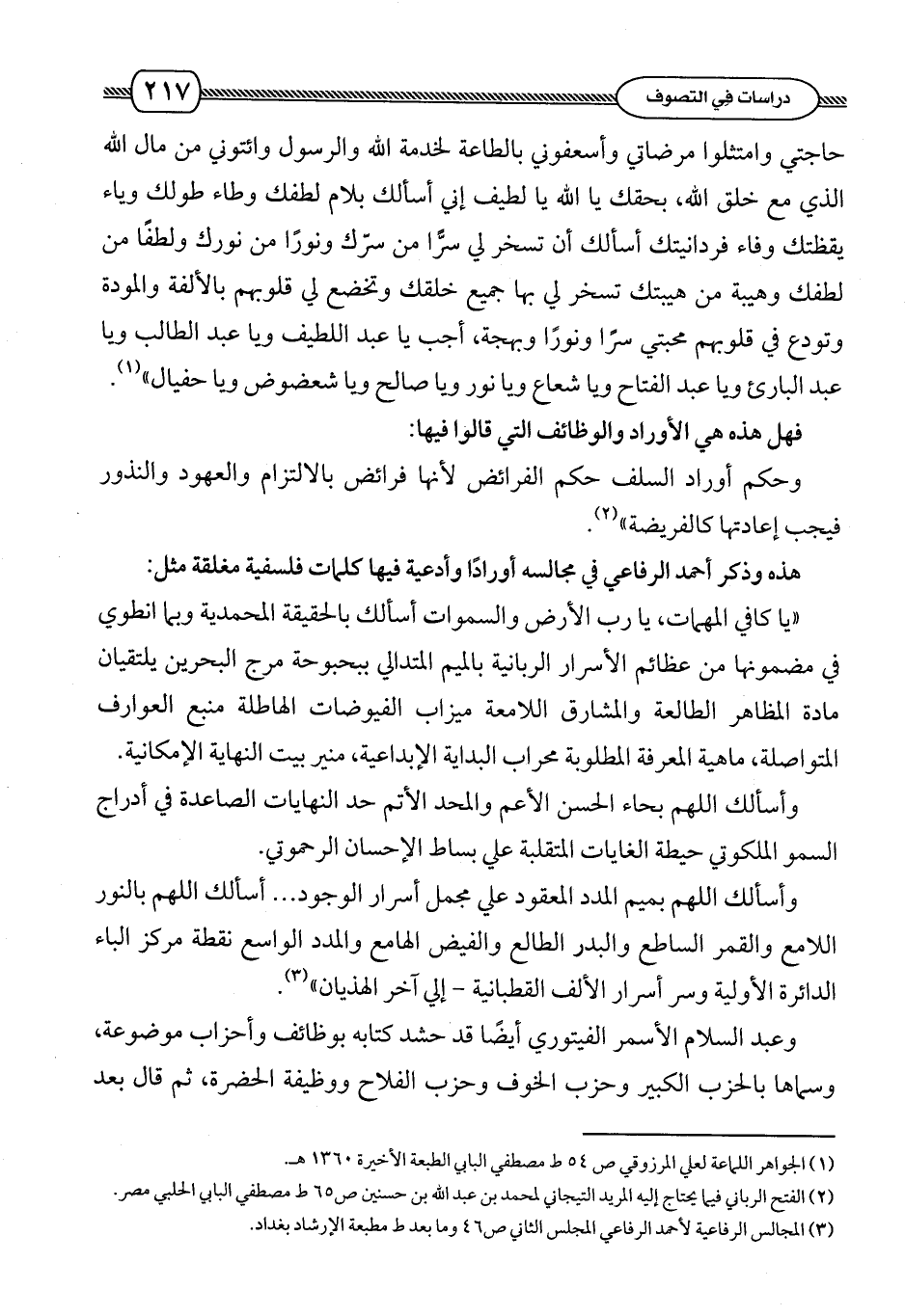 (¬3) المجالس الرفاعية لأحمد الرفاعي المجلس الثاني ص 46 وما بعد ط ... مطبعة الإرشاد بغداد.