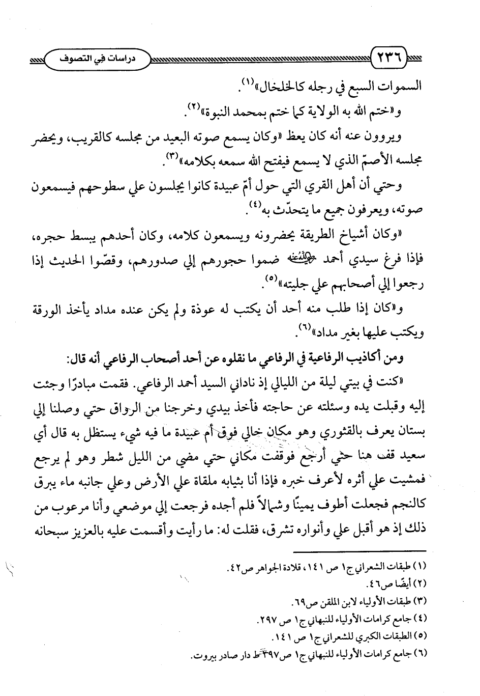 (¬6) جامع كرامات الأولياء للنبهاني ج 1 ص 297 ط دار صادر بيروت.