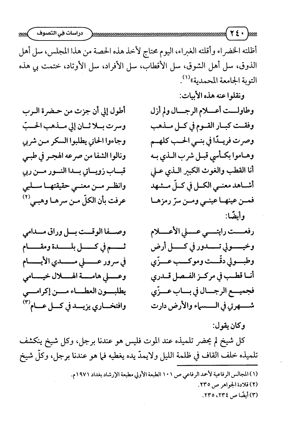 (¬1) المجالس الرفاعية لأحمد الرفاعي ص 101 الطبعة الأولى مطبعة الإرشاد بغداد 1971م.