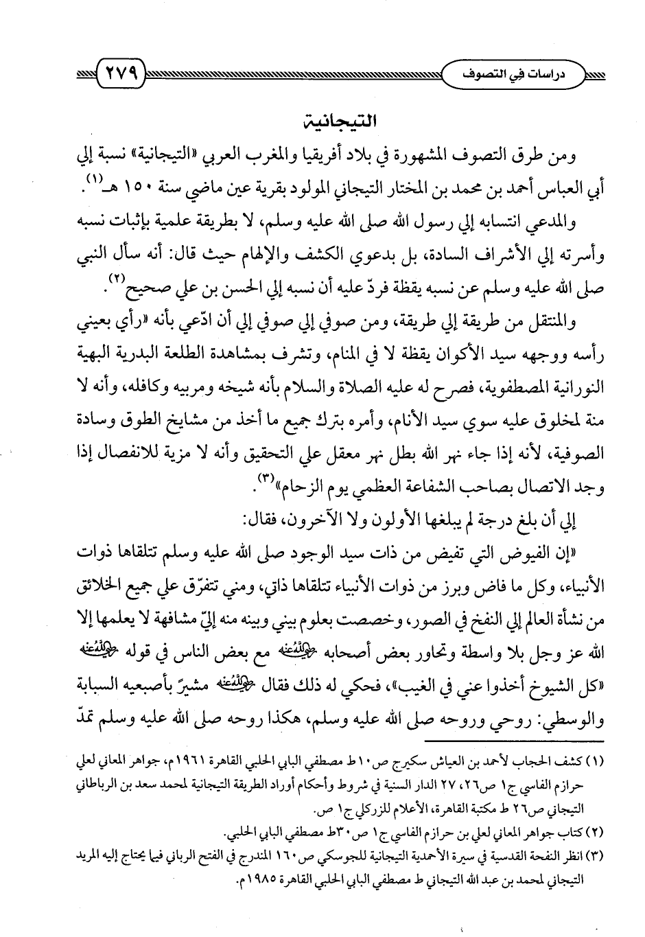 (¬3) أنظر النفحة القدسية في سيرة الأحمدية التيجانية للجوكسي ص 160 المندرج في الفتح الرباني فيما يحتاج إليه المريد التيجاني لمحمد بن عبد الله التيجاني ط مصطفى البابي الحلبي القاهرة 1958 م.