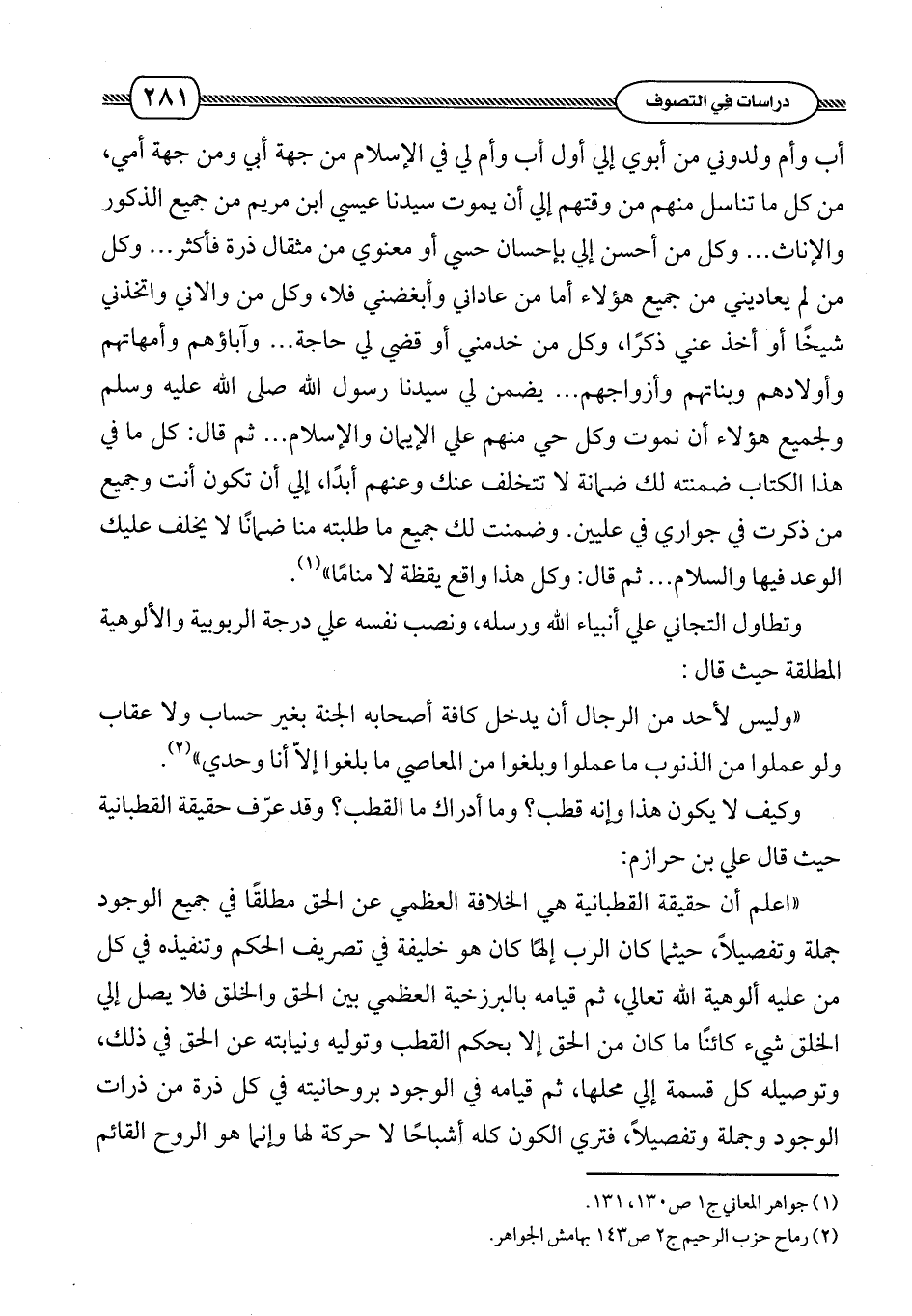 وكيف لا يكون هذا وإنه قطب؟ وما أدراك ما القطب؟ وقد عرّف حقيقة القطبانية حيث قال علي بن حرزام: