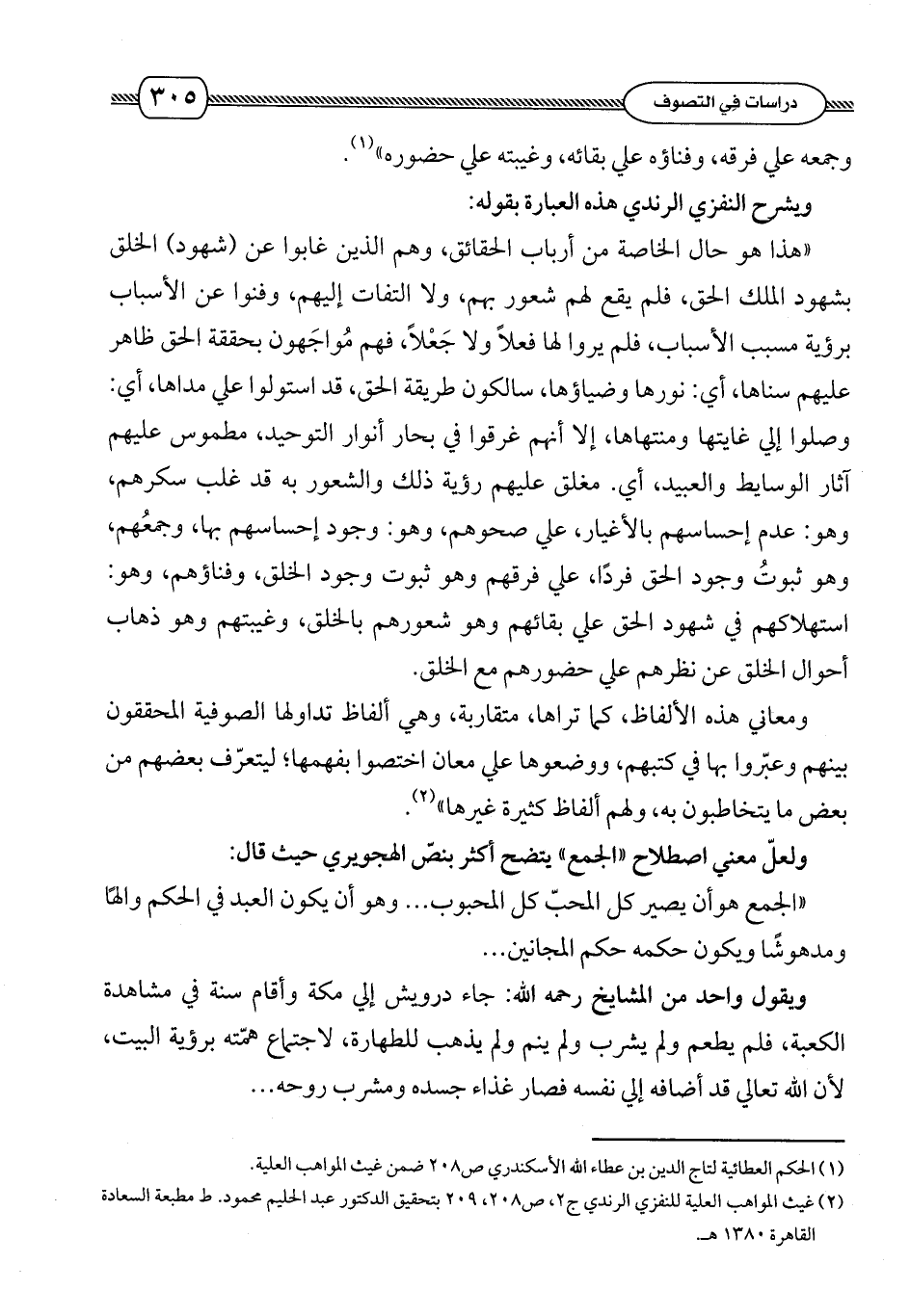 ولعلّ معنى اصطلاح " الجمع " يتضح أكثر بنصّ الهجويري حيث يقول: