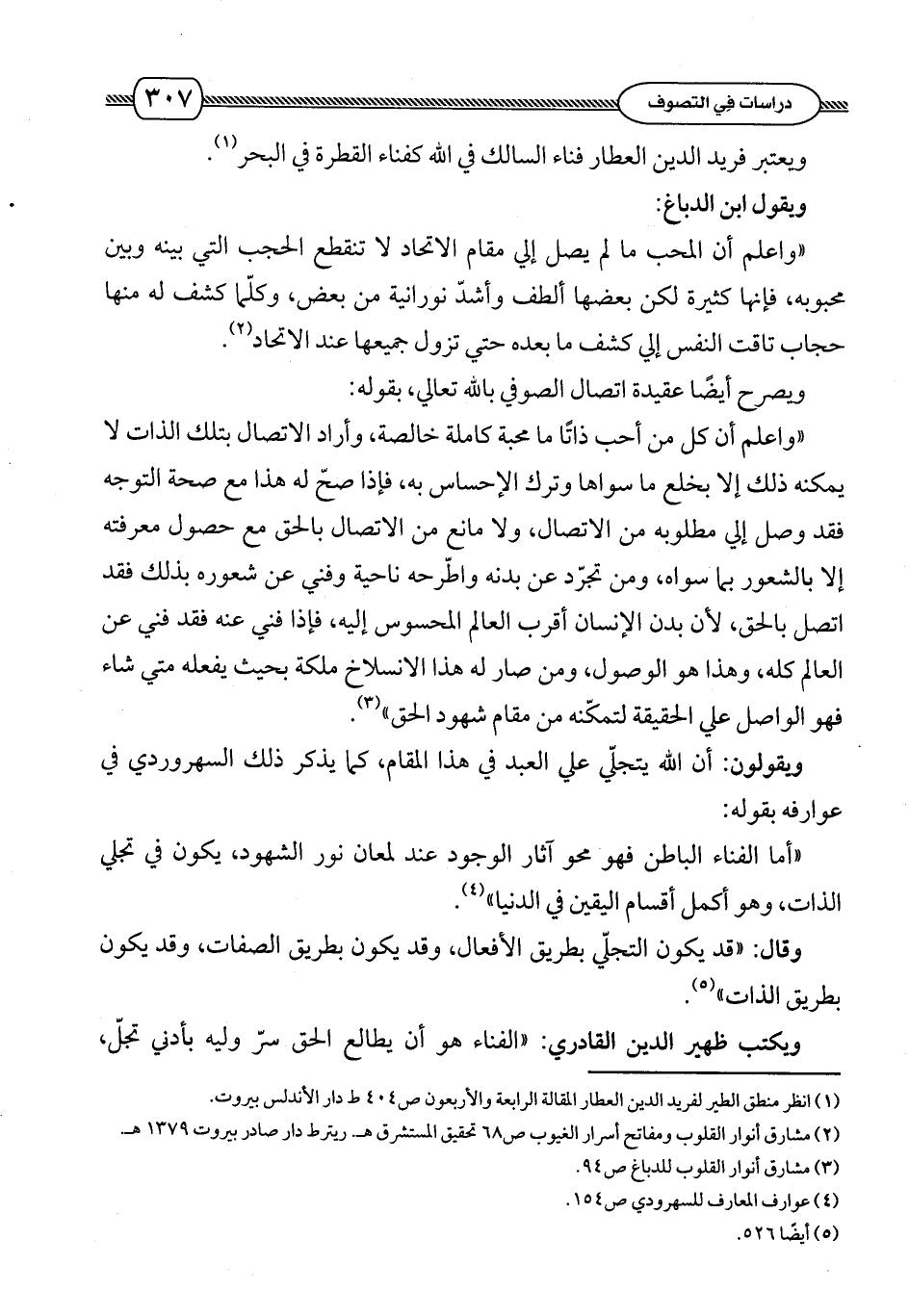 ويعتبر فريد الدين العطار فناء السالك في الله كفناء القطرة في البحر (¬1).