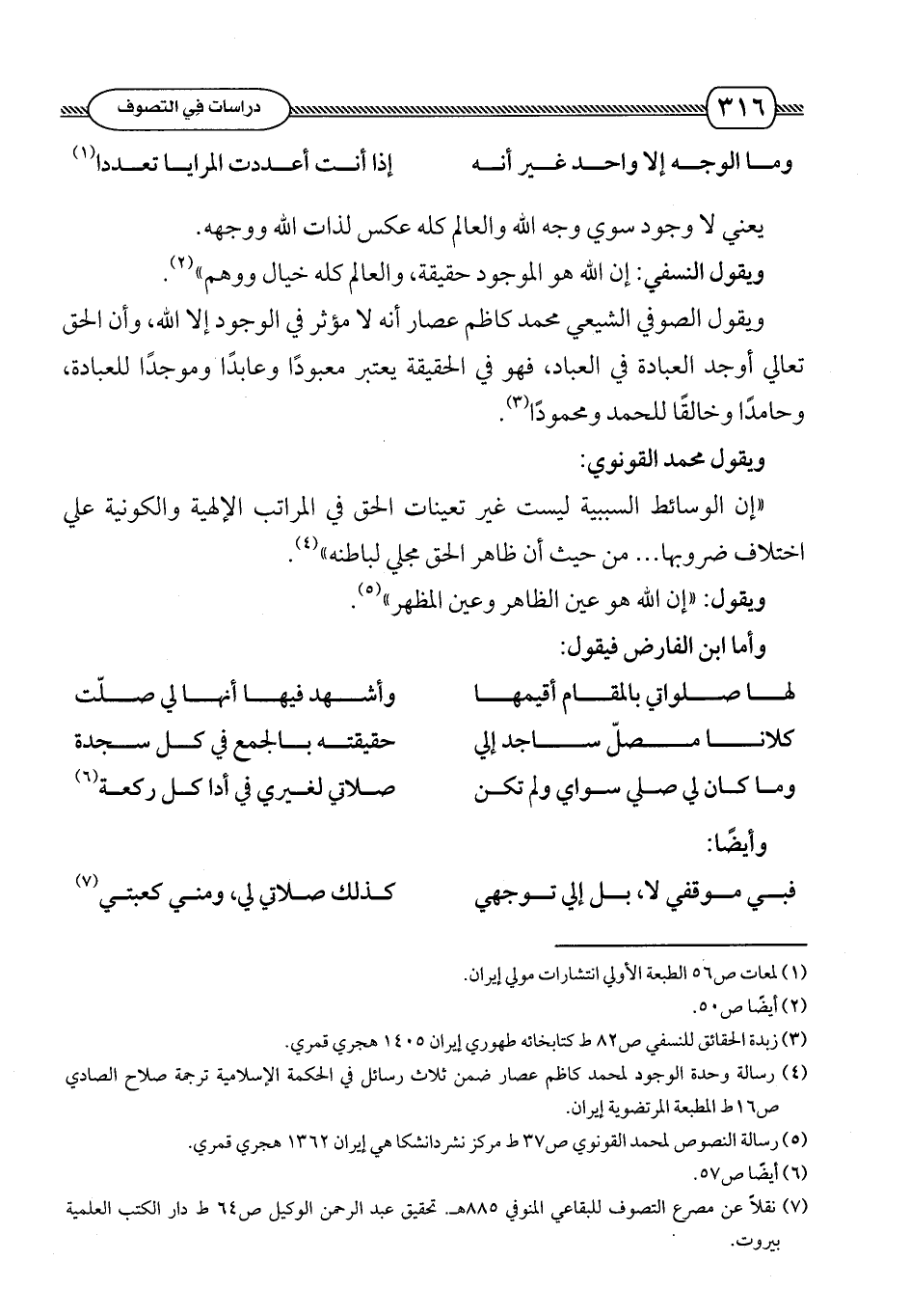 (¬3) رسالة وحدة الوجود لمحمد كاظم عصار ضمن ثلاث رسائل في الحكمة الإسلامية ترجمة صلاح الصادي ص 16 ط المطبعة المرتضوية إيران.