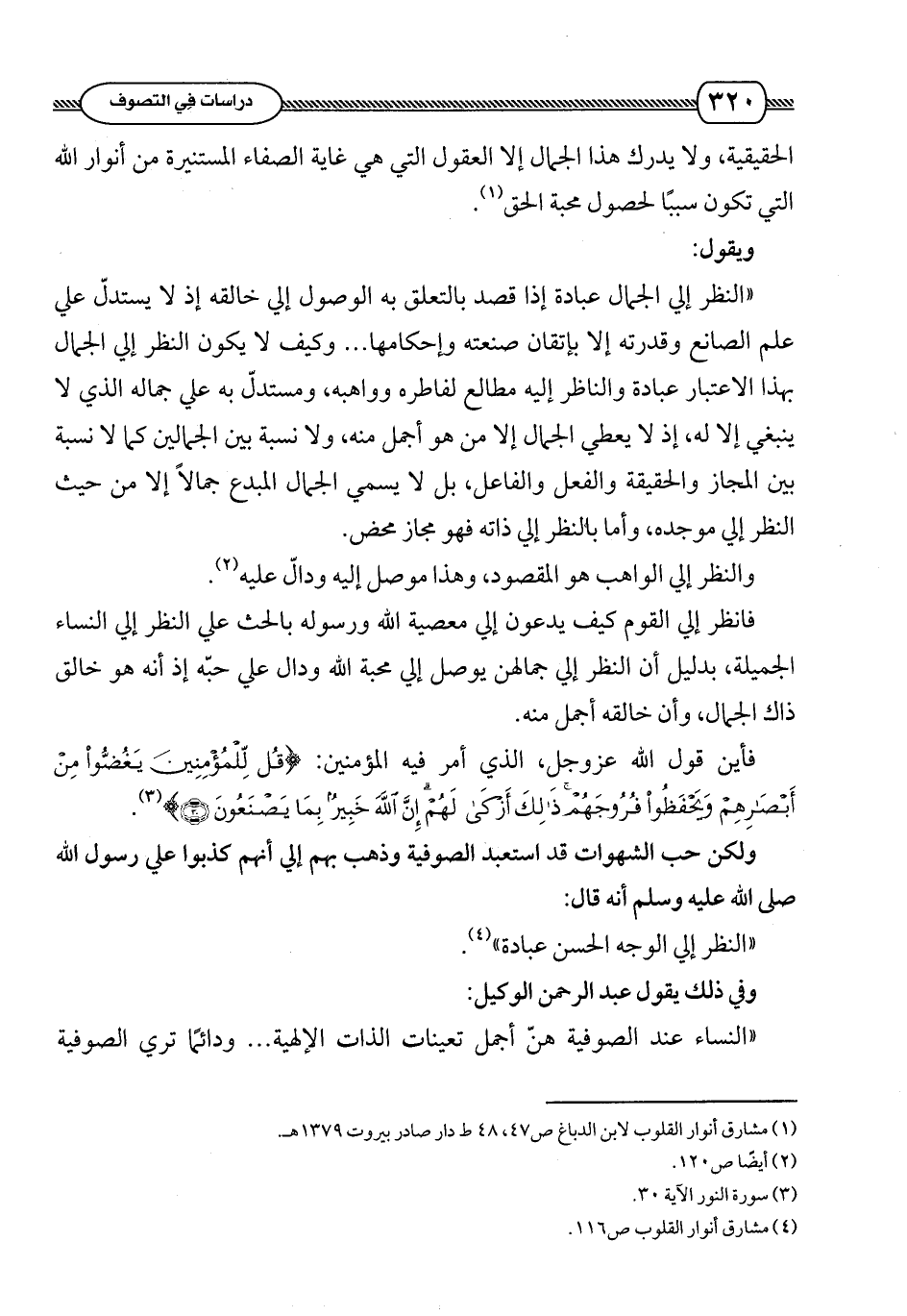 فانظر إلى القوم كيف يدعون إلى معصية الله ورسوله بالحث على النظر إلى النساء الجميلة , بدليل أن النظر إلأى جمالهن يوصل إلى محبة الله ودال على حبّه إذ أنه هو خالق ذاك الجمال , وأن خالقه أجمل منه.