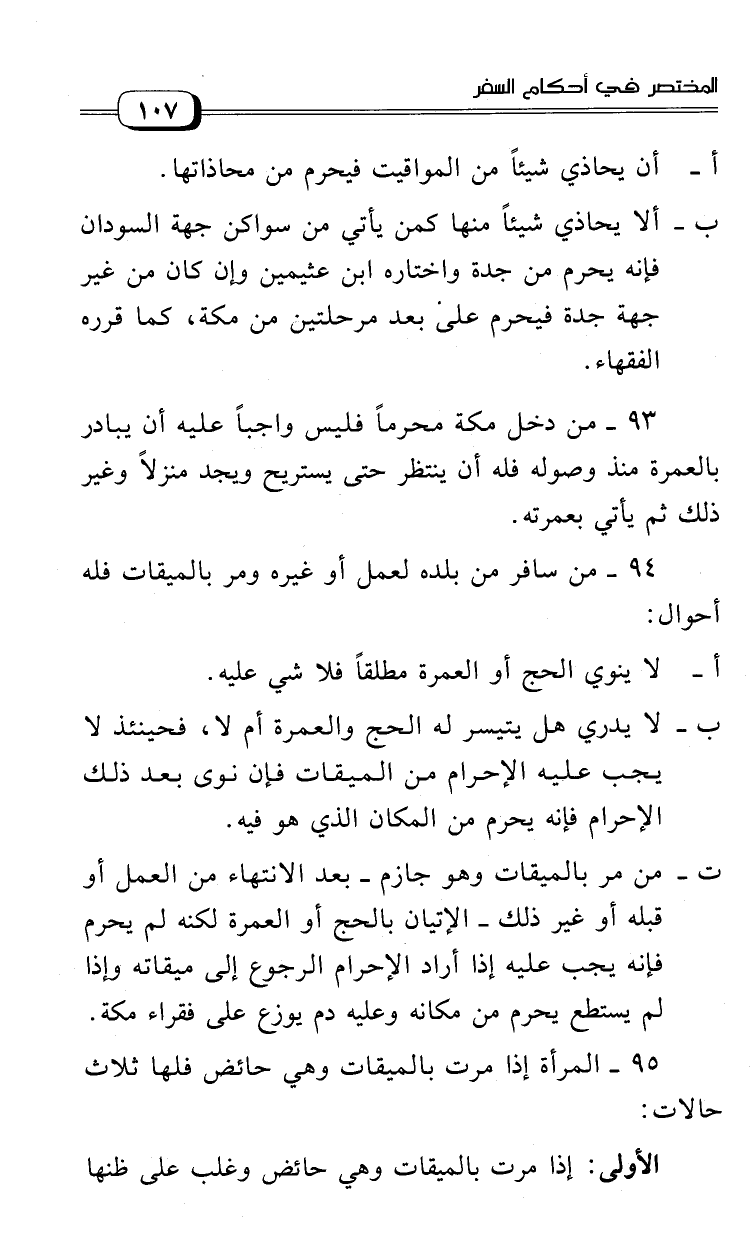 93 - من سافر من بلده لعمل أو غيره ومر بالميقات فله أحوال: