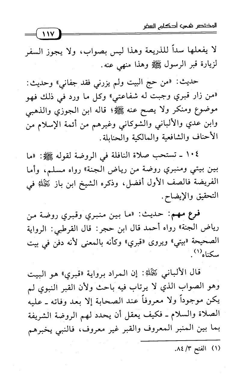 قال الألباني رحمه الله: إن المراد برواية «قبري» هو البيت، وهو الصواب الذي لا يرتاب فيه باحث ولأن القبر النبوي لم يكن موجودا ولا معروفا عند الصحابة إلا بعد وفاته ـ عليه الصلاة والسلام ـ فكيف يعقل أن يحدد لهم الروضة الشريفة بما بين المنبر المعروف والقبر غير معروف، فالنبي يخبرهم