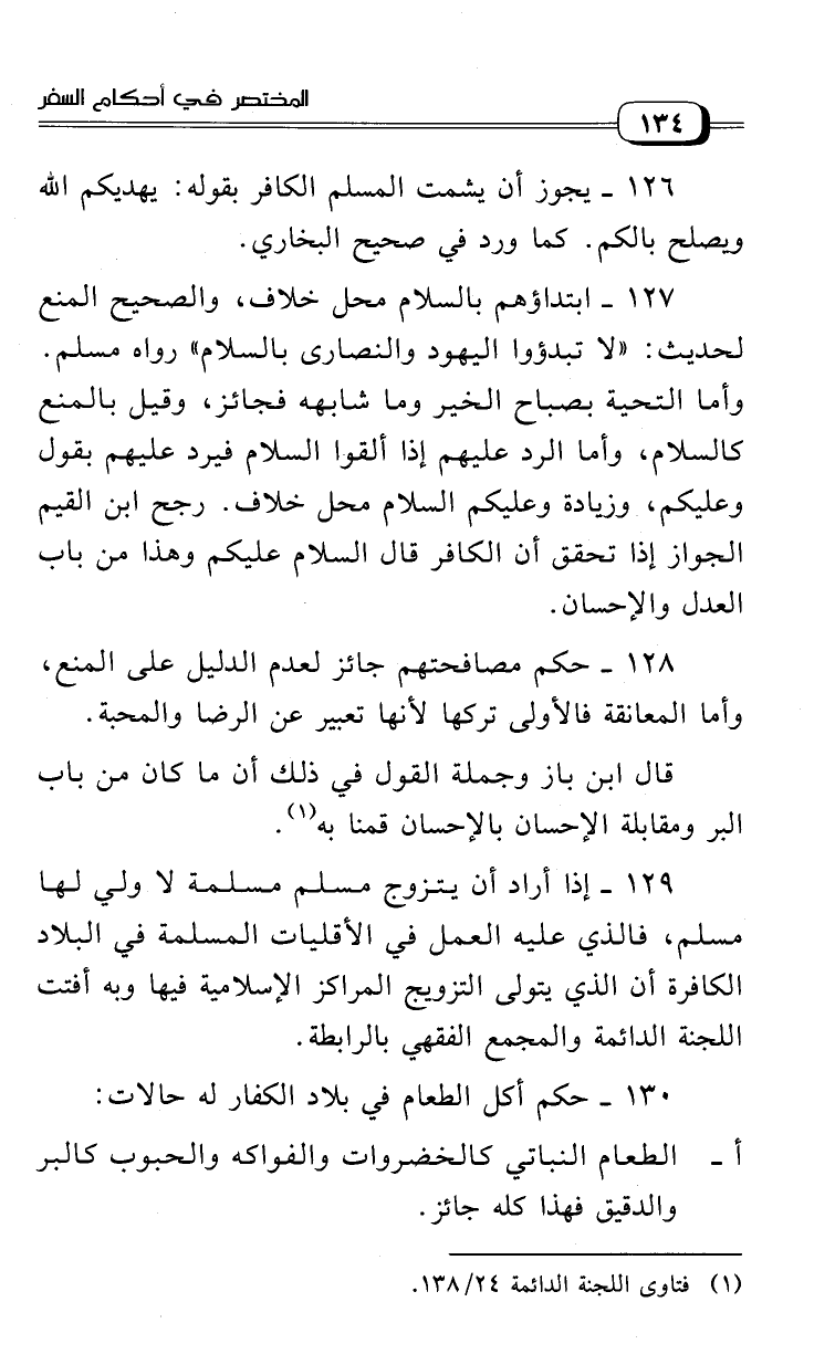 127 - يجوز أن يشمت المسلم الكافر بقوله: يهديكم الله ويصلح بالكم. كما ورد في صحيح البخاري.