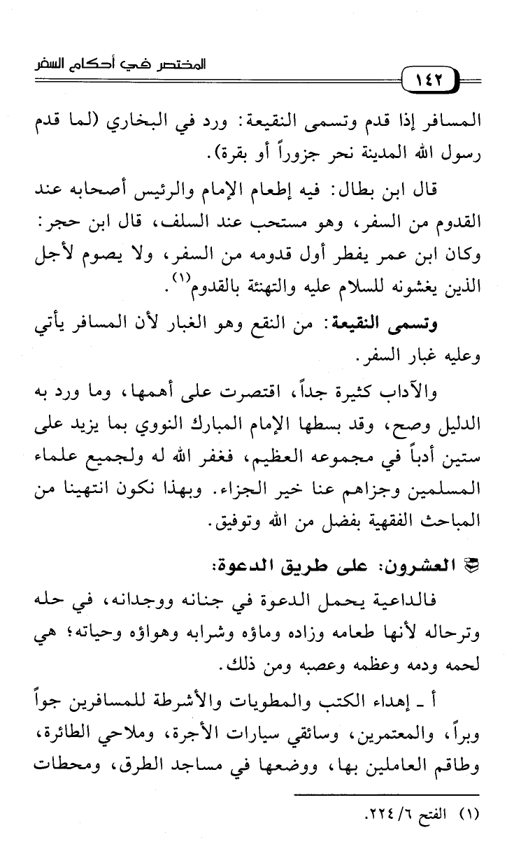 المسافر إذا قدم وتسمى النقيعة: ورد في البخاري "لما قدم رسول الله المدينة نحر جزورا أو بقرة".