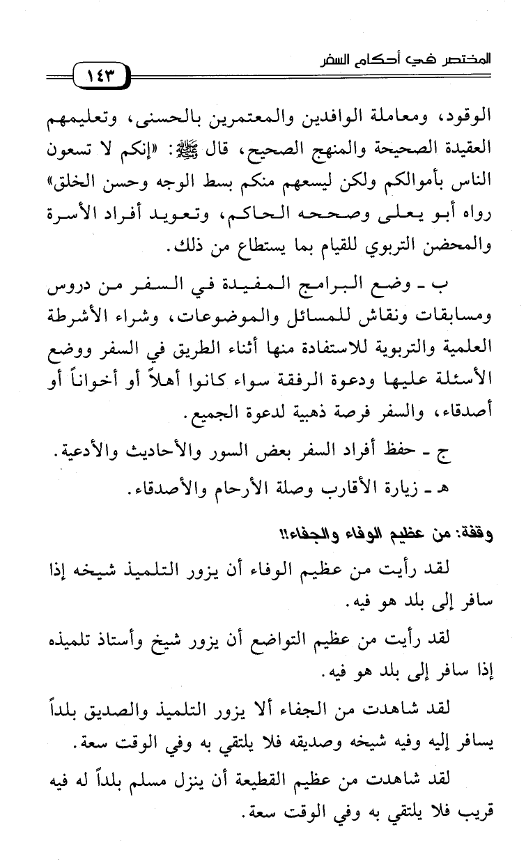 لقد شاهدت من الجفاء ألا يزور التلميذ والصديق بلدا يسافر إليه وفيه شيخه وصديقه فلا يلتقي به وفي الوقت سعة.
