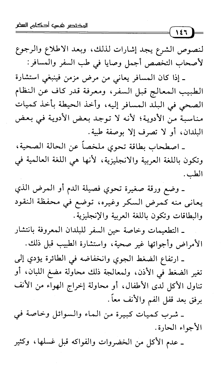 لنصوص الشرع يجد إشارات لذلك، وبعد الاطلاع والرجوع لأصحاب التخصص أجمل وصايا في طب السفر والمسافر: