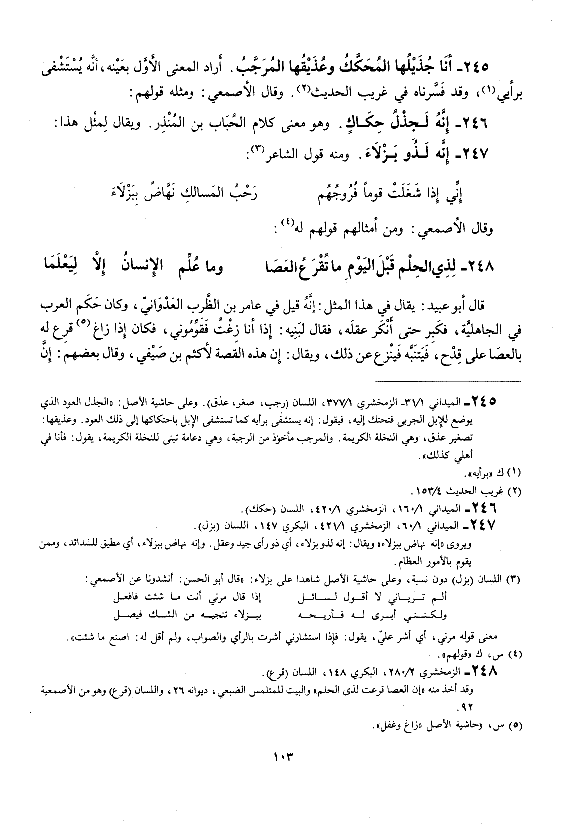 أراد المعنى الأول بعينه، إنّه يستشفى برأيي، وقد فسرناه في غريب الحديث. وقال الأصمعي: ومثله قولهم: إنّه لجذل حكاكٍ.