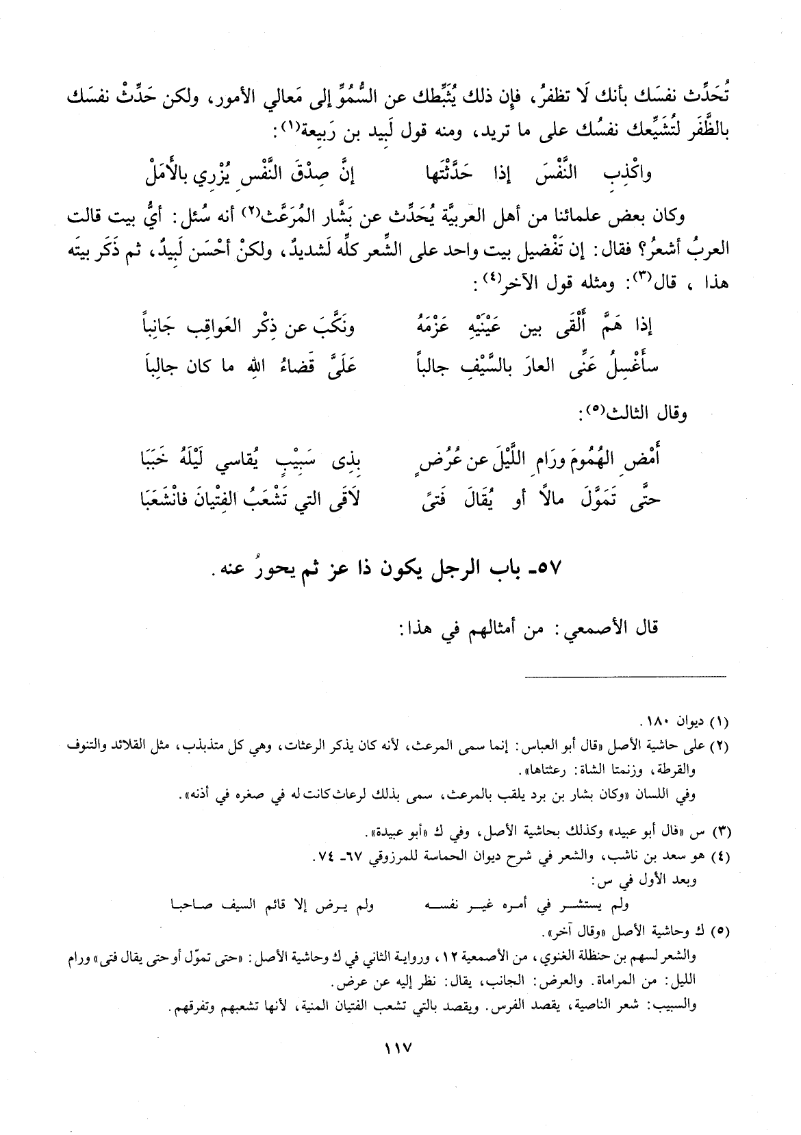 تحدث نفسك بأنك لا تظفر، فإنَّ ذلك يثبطك عن السمو إلى النعالي الأمور، ولكن حدث نفسك بالظفر لتشيعك نفسك على ماتريد، ومنه قول لبيد بن ربيعة: