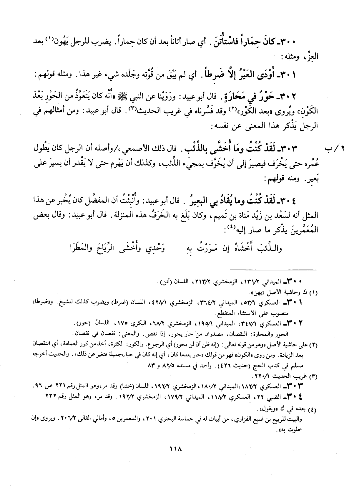 قال أبو عبيد: وروينا عن النبي) " أنه كان يتعوذ من الحور بعد الكون " ويروى " بعد الكور " وقد فسرناه في غريب الحديث. قال أبو عبيد: ومن أمثالهم في الرجل يذكر هذا المعنى عن نفسه: