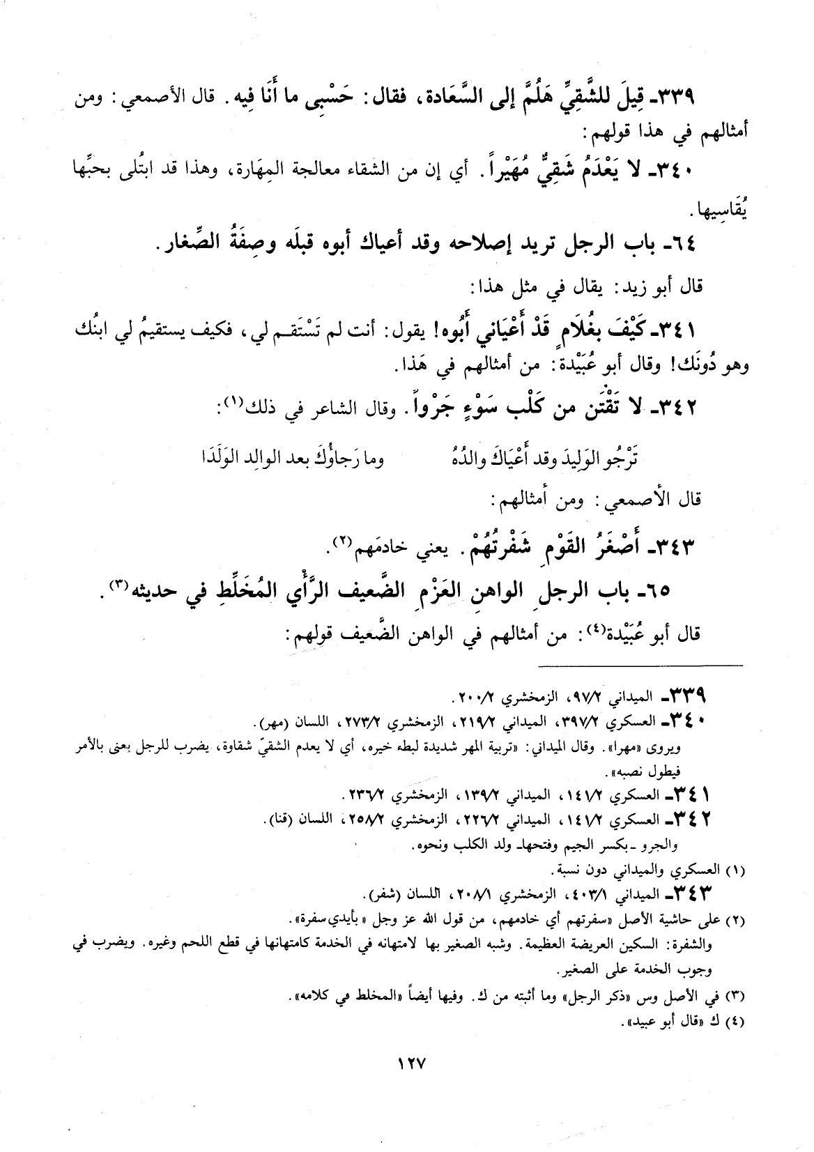 قال أبو زيد: يقال في مثل هذا: كيف بغلامٍ قد أعياني أبوه! يقول: أنت لم تستقم لي، فكيف يستقيم لي ابنك وهذا دونك! وقال أبو عبيد: من أمثالهم في هذا: لا تقتن من كلب سوءٍ جرواً.