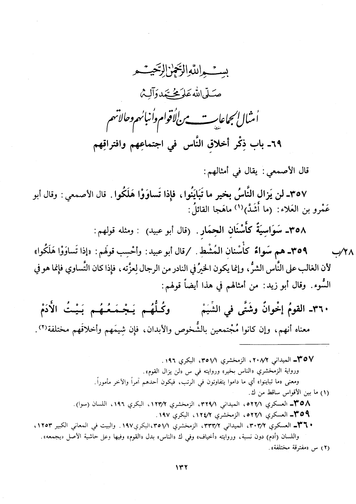 قال أبو عبيد: وأحسب قولهم: " إذا تساووا هلكوا " لن الغالب على الناس الشر، وإنّما يكون الخير في النادر من الرجال لعزته، فإذا كان التساوي فإنما هو في السوء. وقال أبو زيد. ومن أمثالهم في هذا أيضاً قولهم: