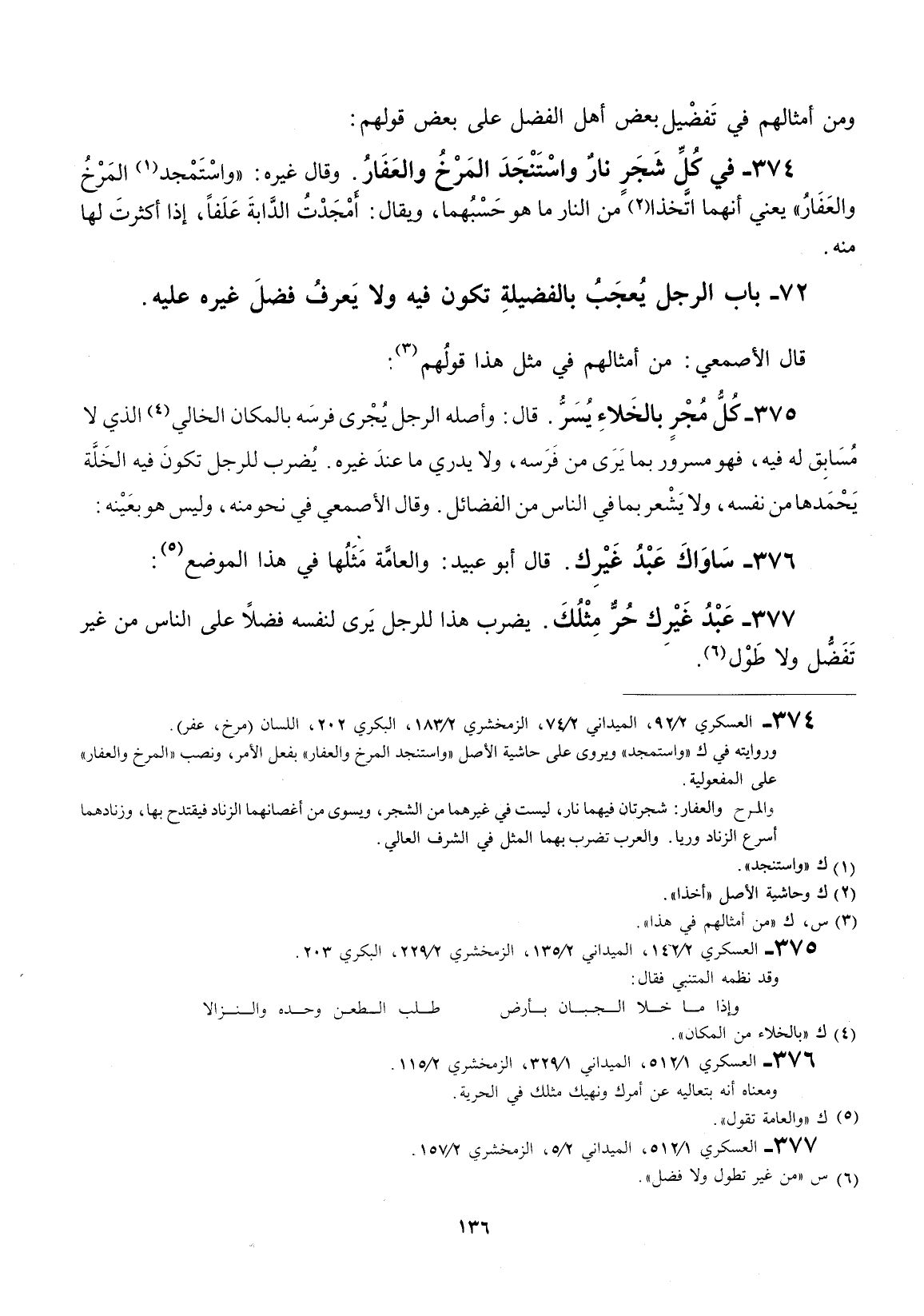 ومن أمثالهم في تفضيل أهل الفضل على بعض قولهم: في كل شجر نار واستنجد المرخ والعفار.