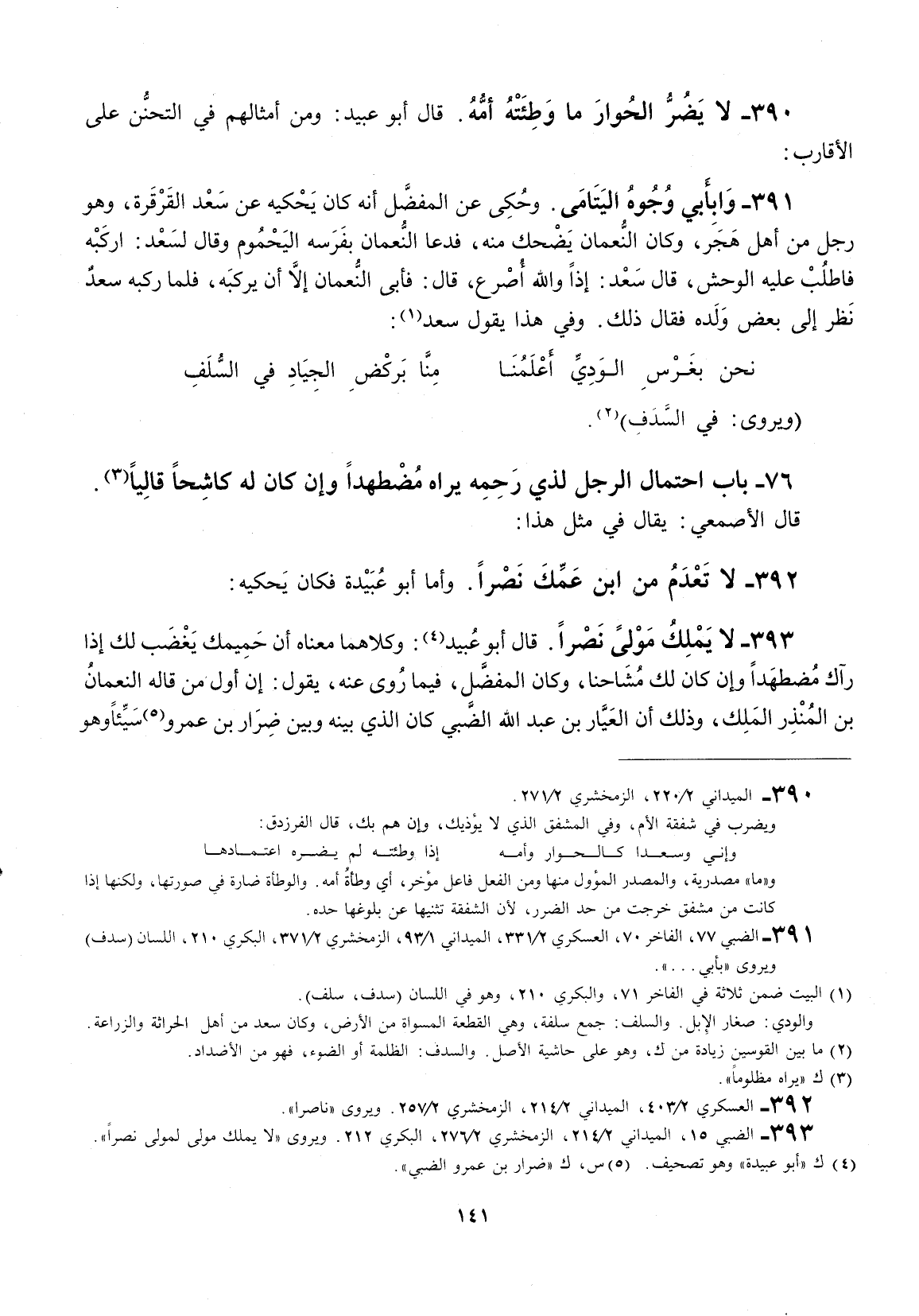 قال أبو عبيد: وكلاهما معناه أنَّ حميمك يغضب لك إذا رآك مضطهدا وإنَّ كان لك مشاحنا، وكان المفضل، فيما روى عنه، يقول: إنَّ أوّل من قاله النعمان بن المنذر الملك، وذلك إنَّ العيار بن عبد الله الضبي كان الذي بينه وبين ضرار بن عمرو سيئاً وهو